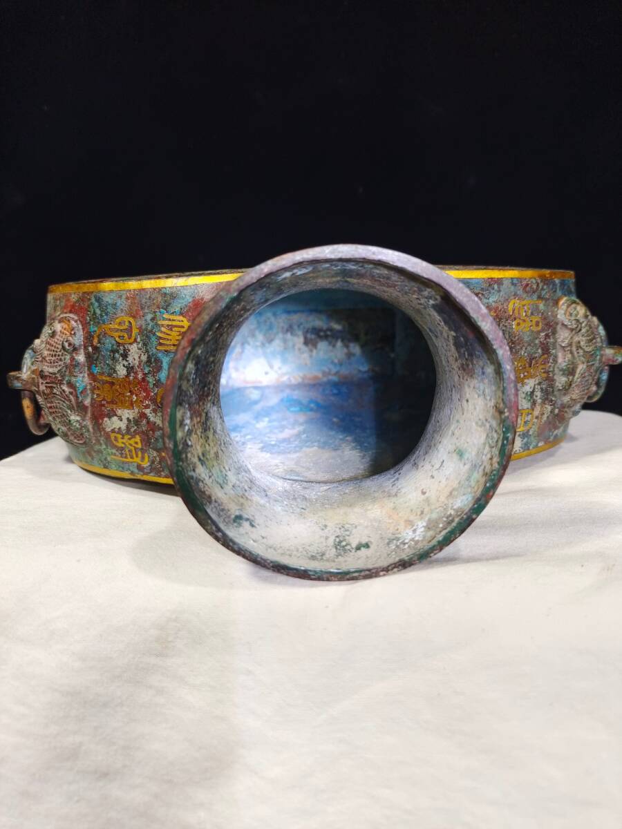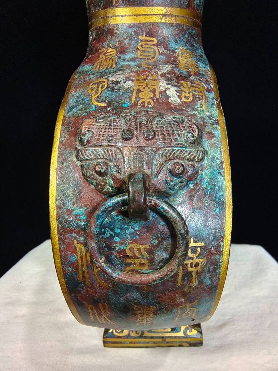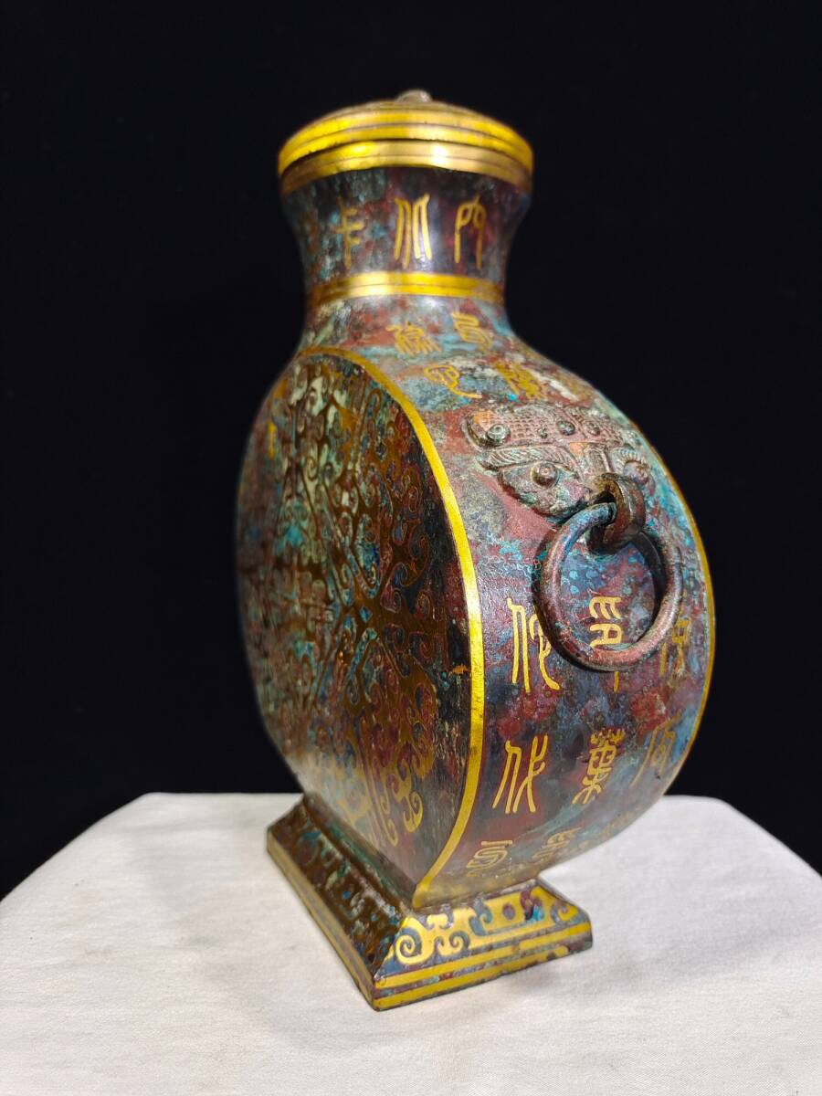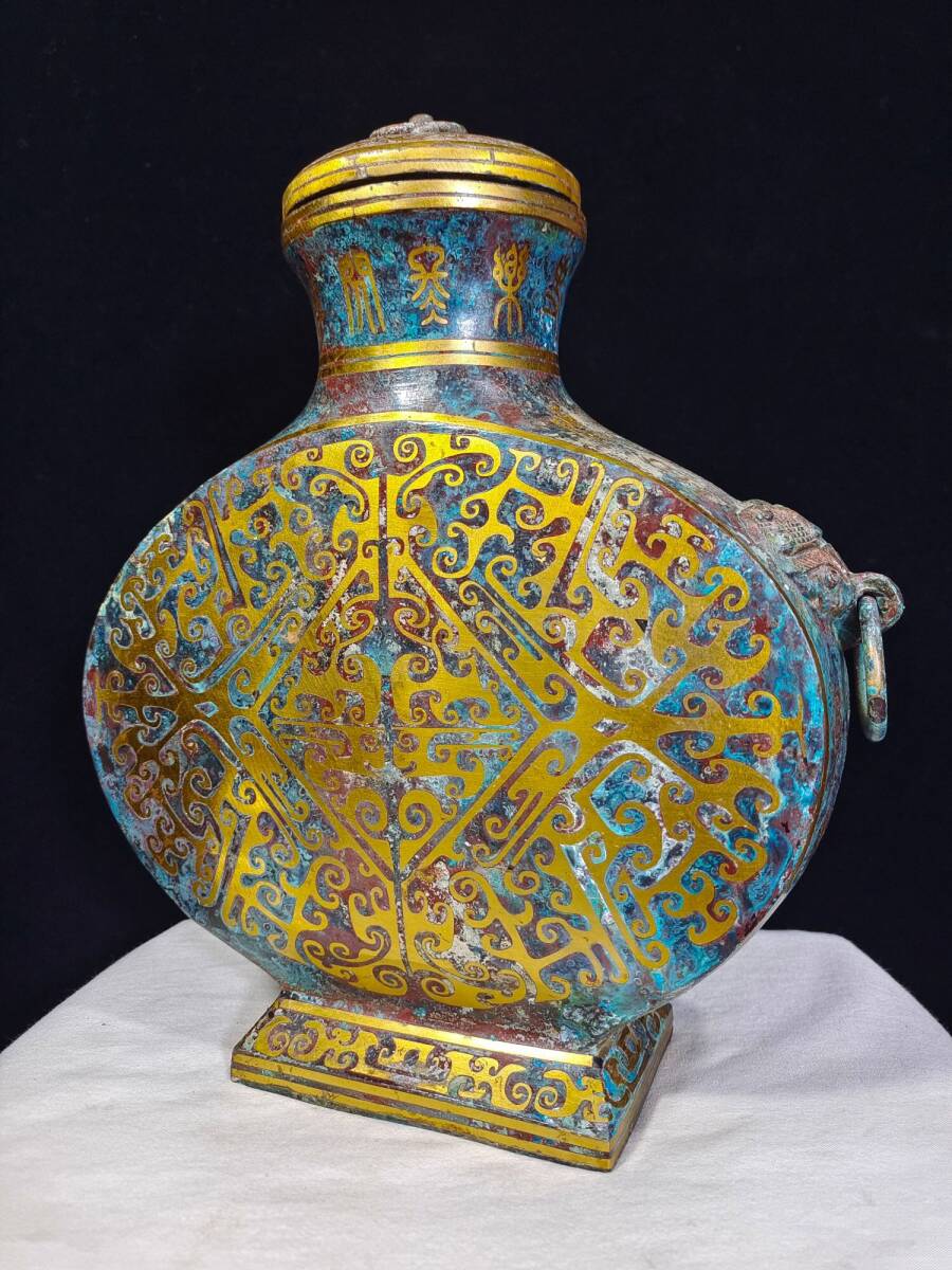 | 【蔵友館蔵品・戦・青銅製・錯金銘文扁壺】・希少珍品・置物・賞物・中国時代美術 |
