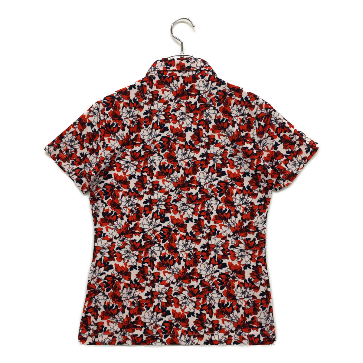 【トップス】 半袖ポロシャツ/紺×赤×白/花柄