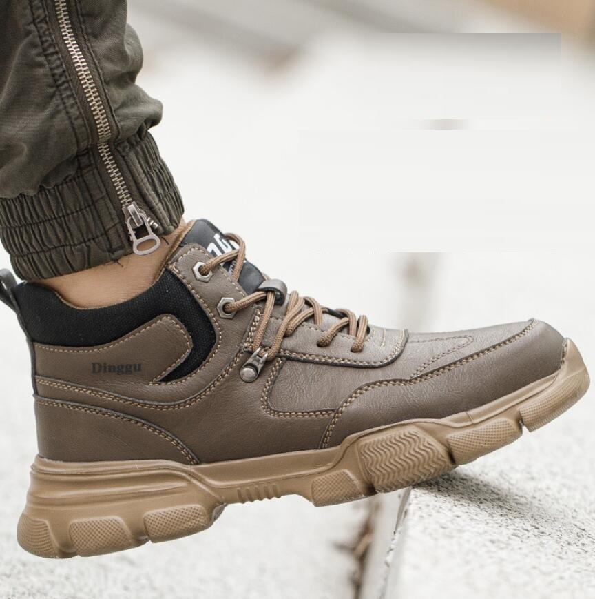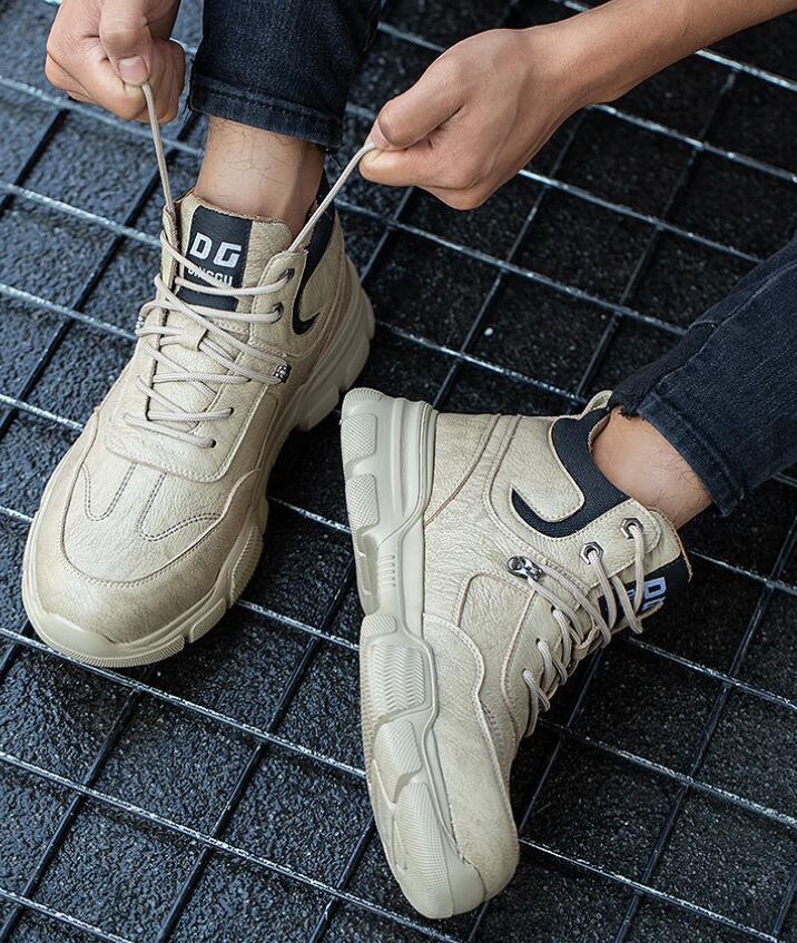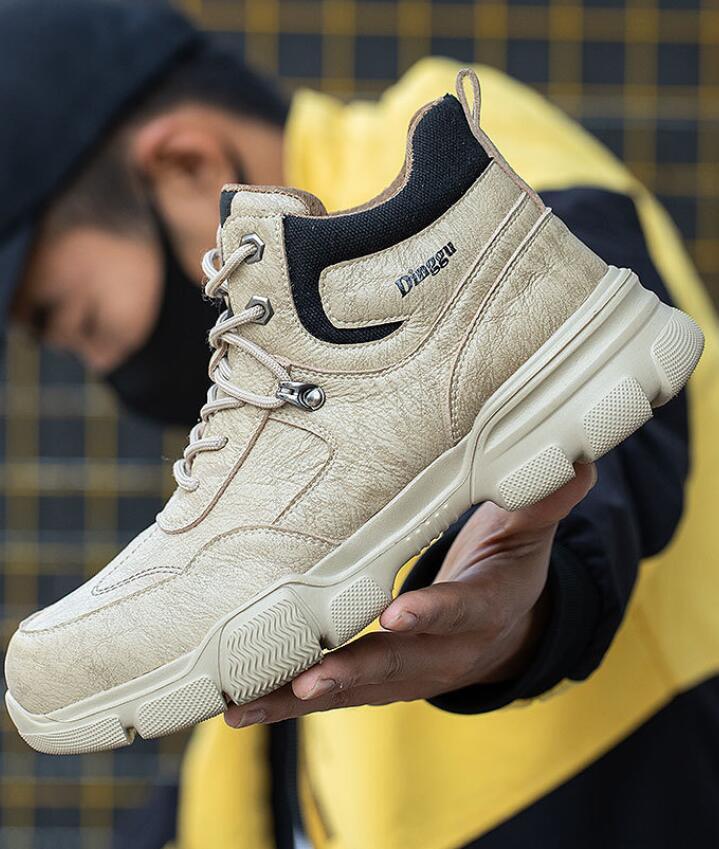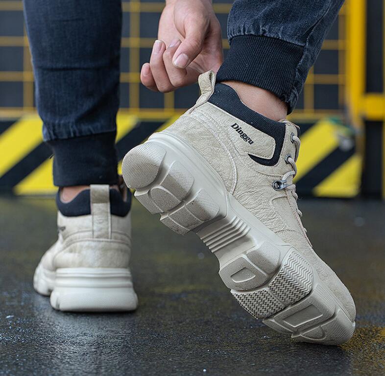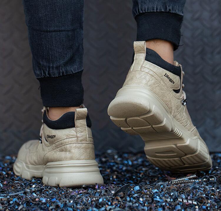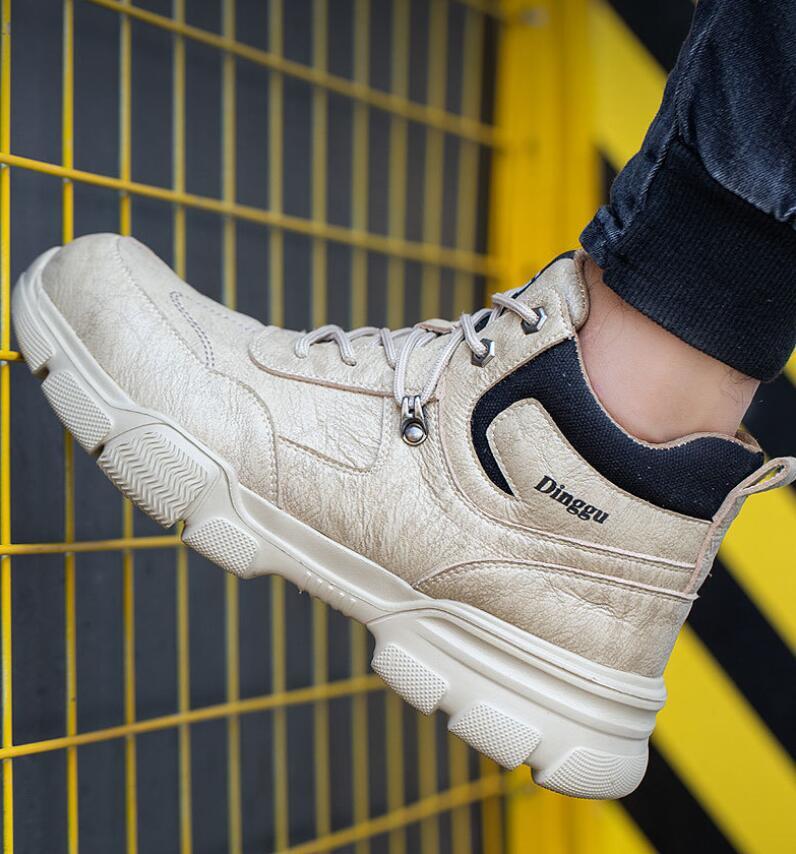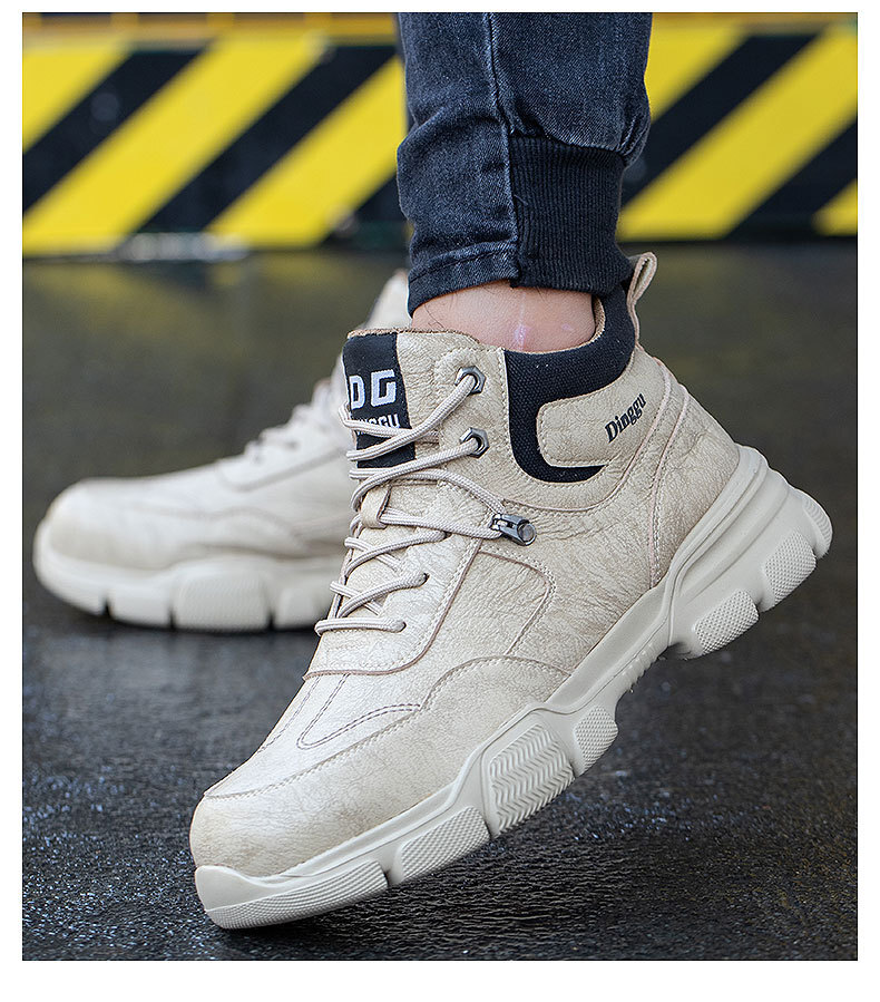 新作作業靴 安全靴 メンズ レディース 男女兼用 鋼先芯 つま先保護 滑りにくい ハイカット おしゃれ 軽量 防水 安い ベージュ23.5~28cm