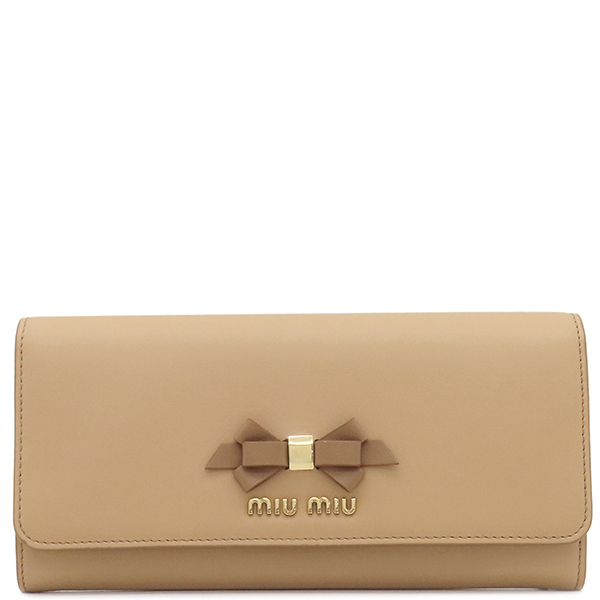 | ミュウミュウ MIU MIU 長財布 レザー ベージュ系ロングウォレット カードケース付き ゴールド金具 5MH109 レディース 【箱】定番 人気 美品 中古 | |