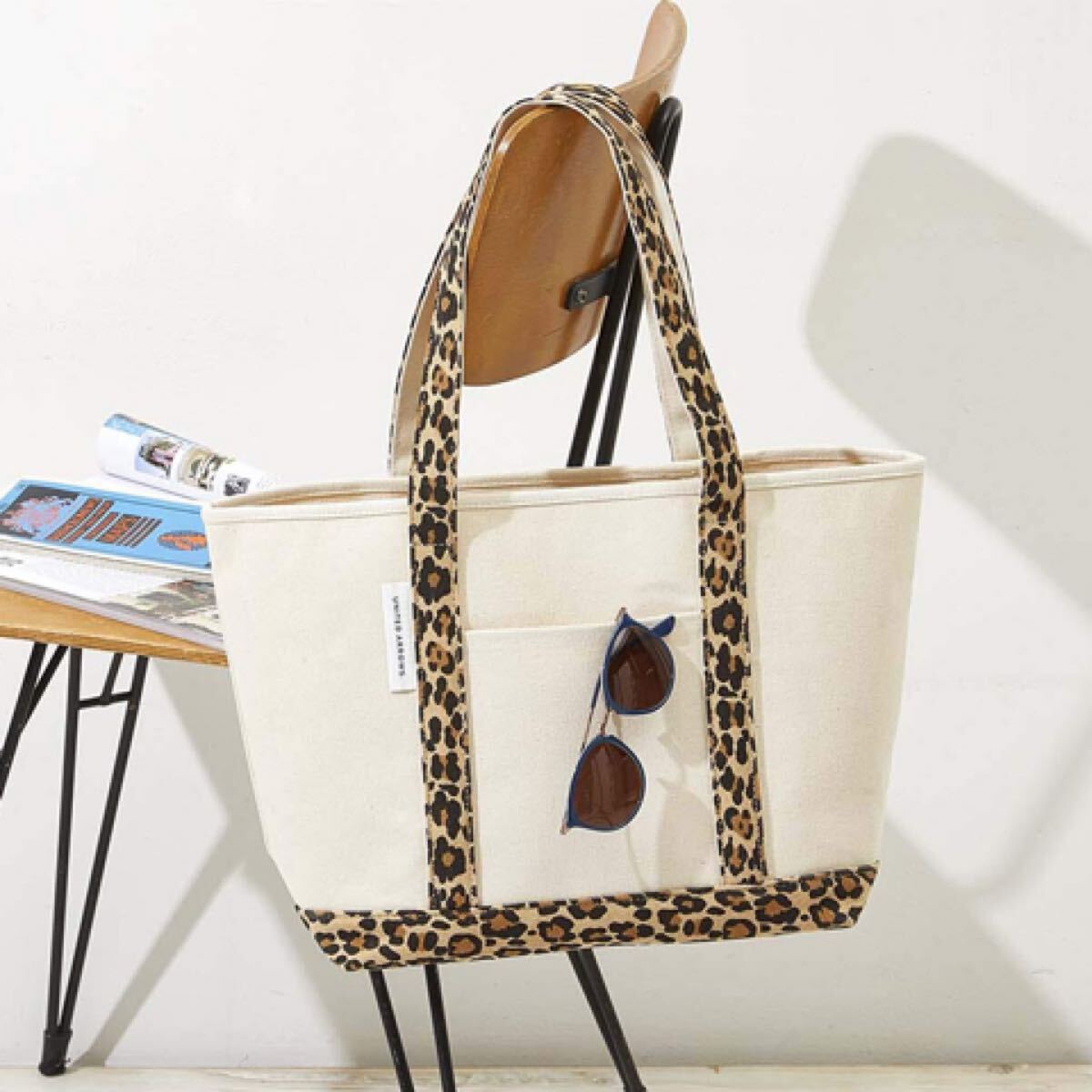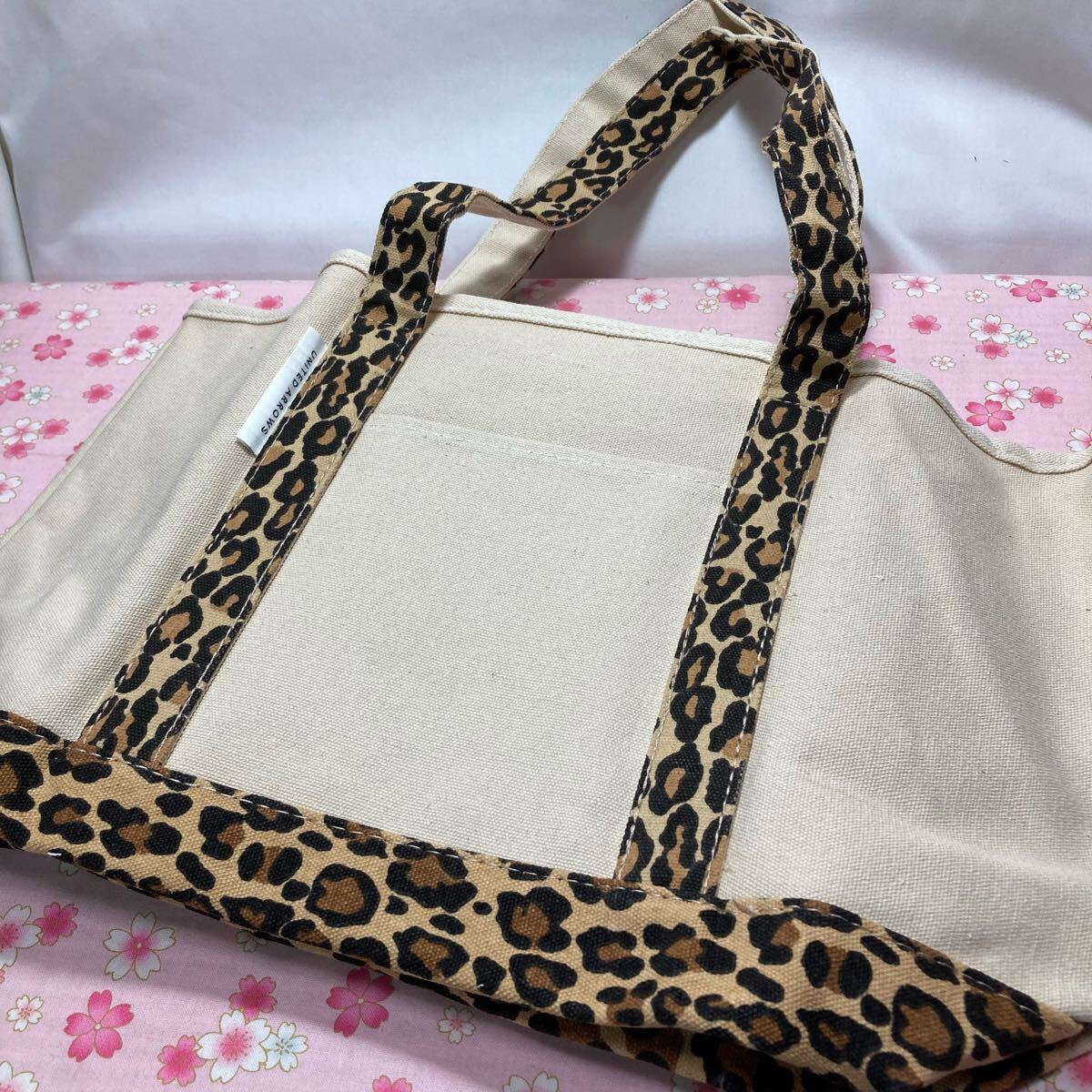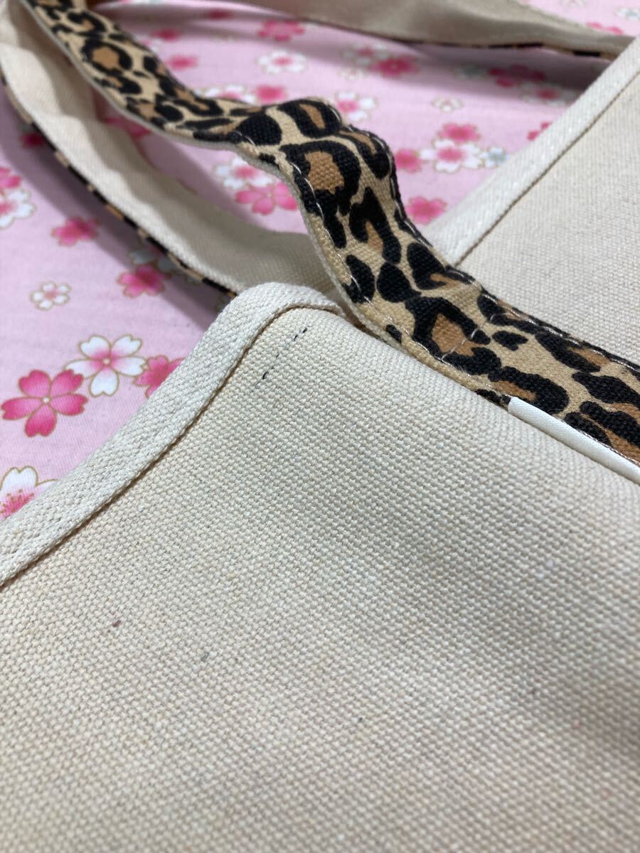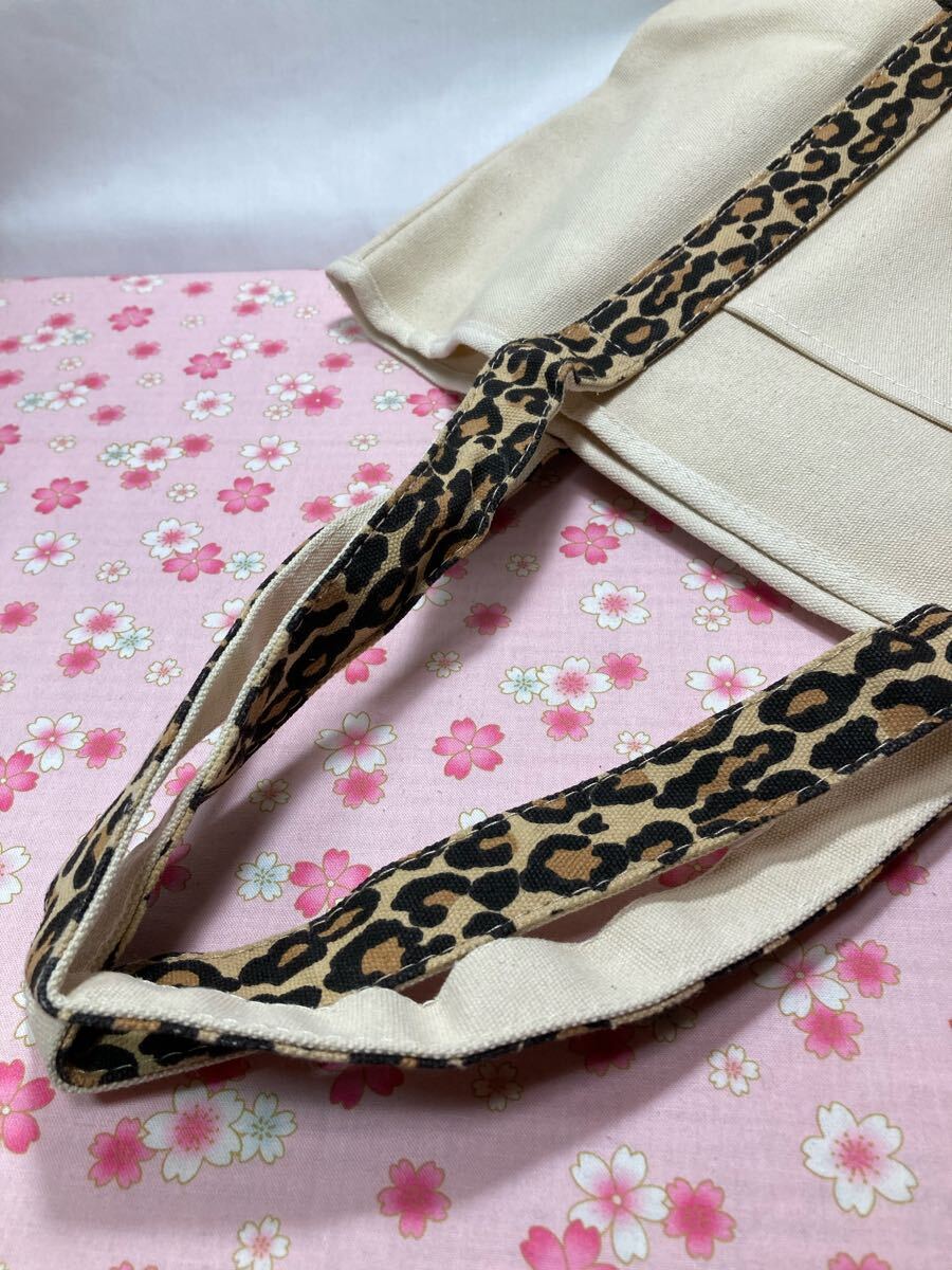 大人気トートのレオパード柄が登場。丈夫なキャンバス地を使用。A4雑誌が横向きですっぽり入る、使いやすいサイズ。