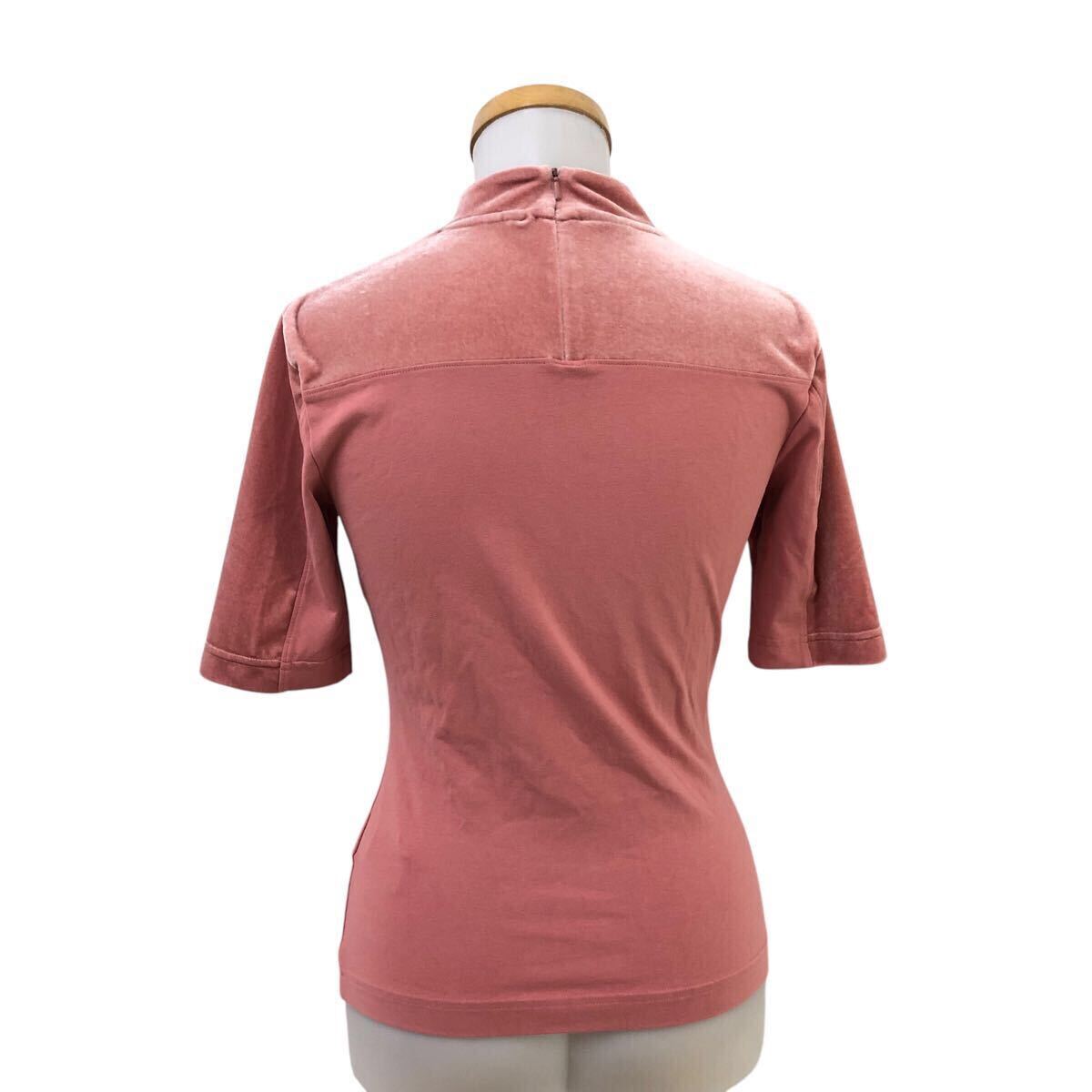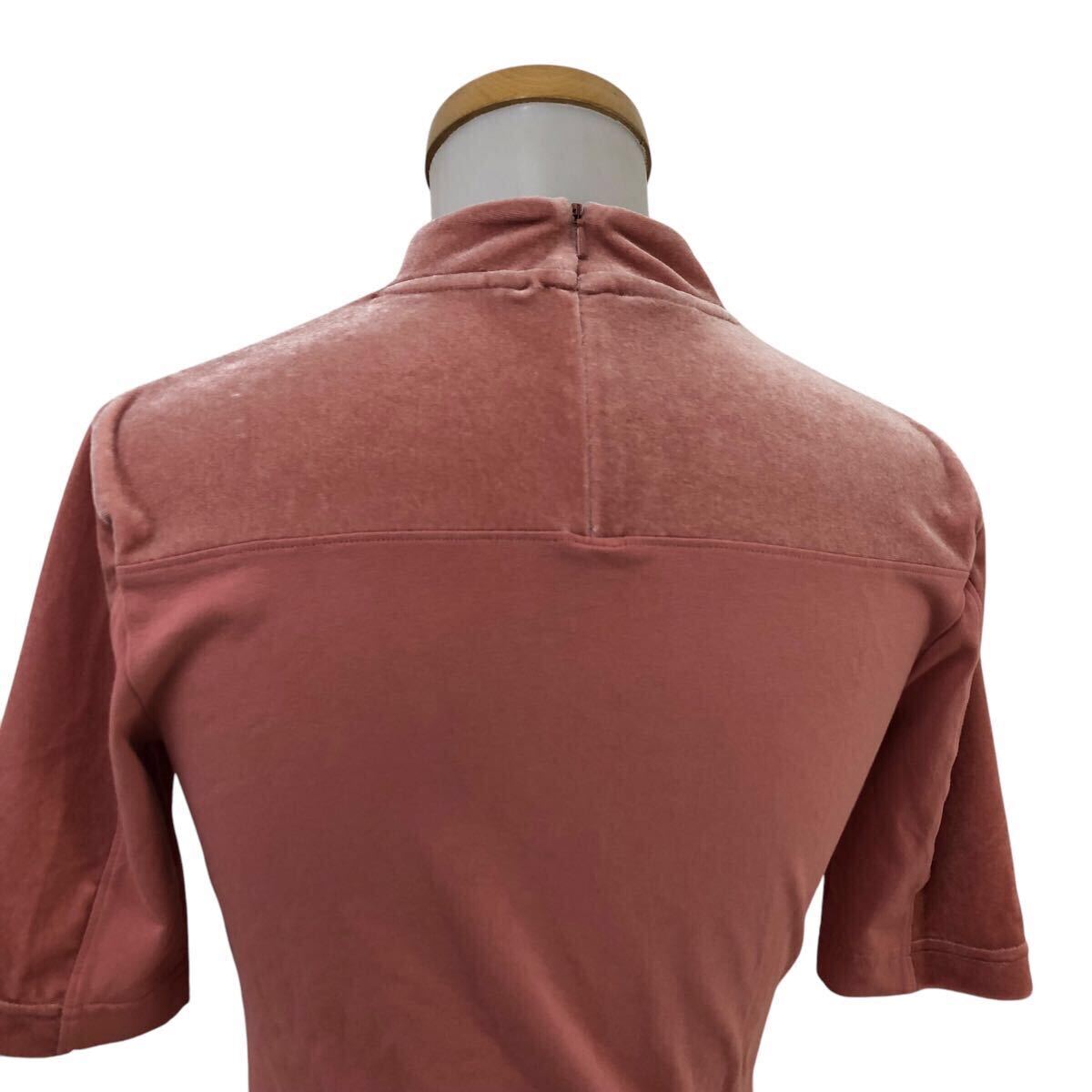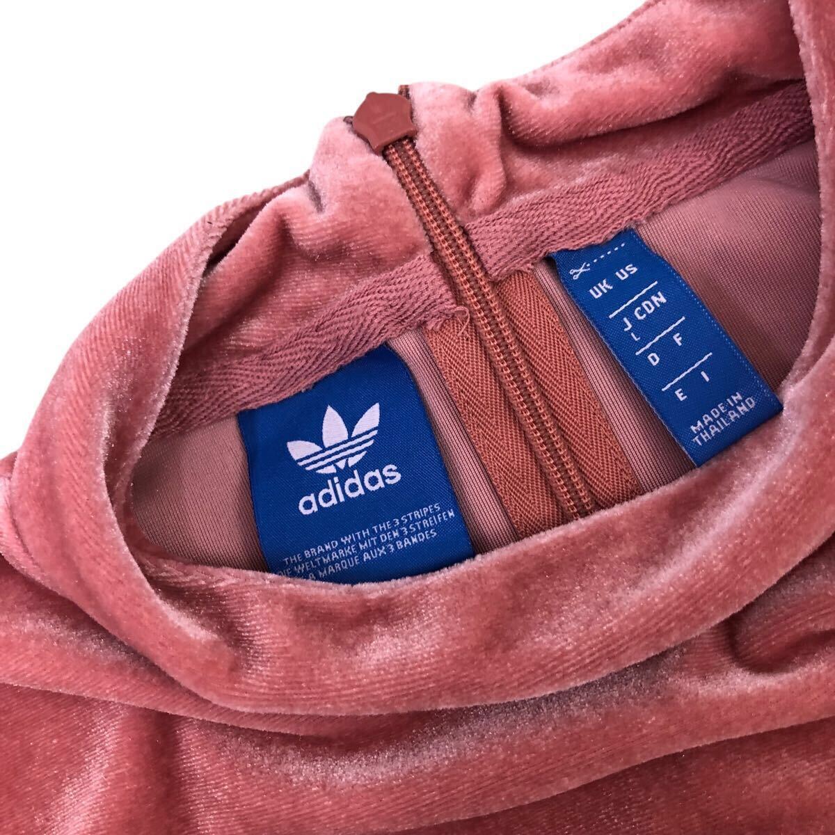 Nm298-22 adidas アディダス ベロア モックネック 半袖 Tシャツ シャツ カットソー トレフォイル 刺繍 トップス ピンク レディース L