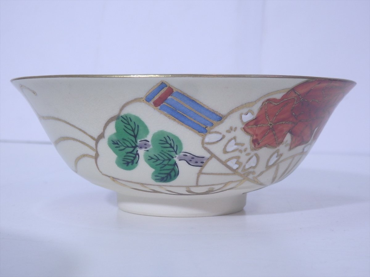 ★状態良好!夏茶碗が3つ【抹茶碗4客セット】扇面色絵平茶碗:直径14cm 高さ5.4cm 茶道具 茶器 セール!