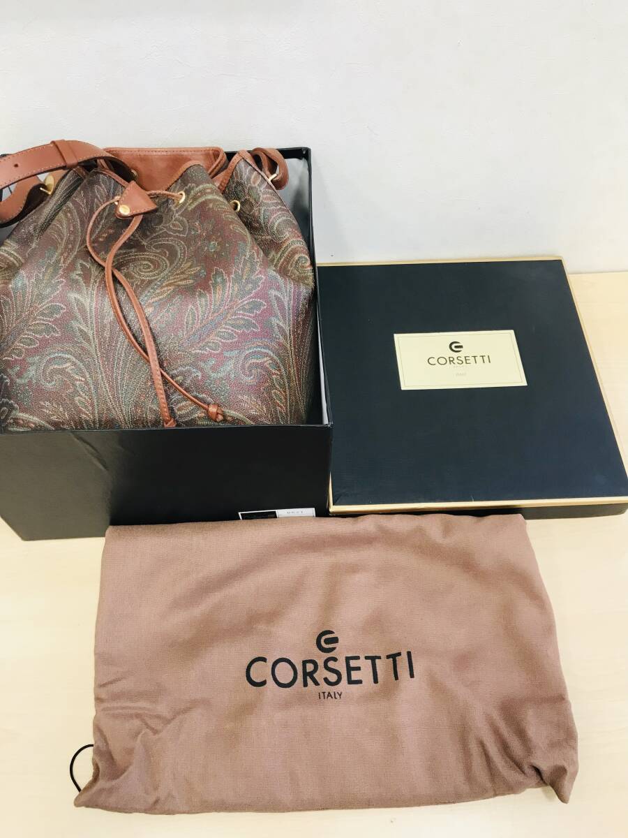 1円~ 巾着型 ショルダーバッグ クロスボディ 斜め掛け レディース ブラウン系  ペ-ズリー柄 CORSETTI ITALY コロッティ