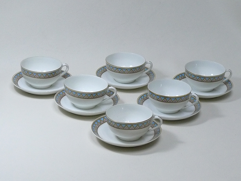 8003H03*4B▲OLD NORITAKE/オールドノリタケ・カップ&ソーサ・6客セット・ヤジロベー・日本陶器会社・アールデコ・幾何学模様