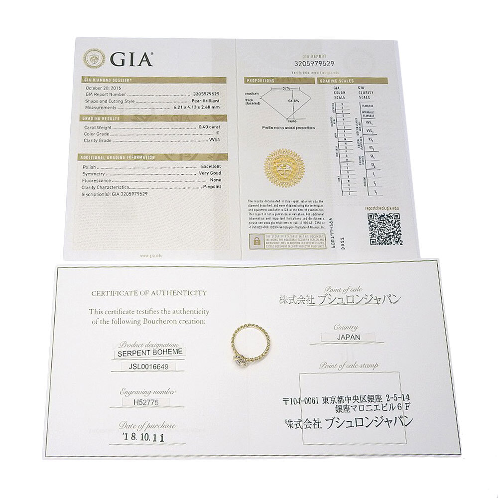 | 商品説明 | ■管理番号:☆☆H222524020☆☆ ■ブランド:【Boucheron】ブシュロン ■商品名:リング・指輪 ■モデル名:セルパンボエム ■型番:JSL0016649 ■対象:レディース ■シリアル:H527** ■素材:K18イエローゴールド / ダイヤモンド ■重量:約2.3g ■石目:ダイヤモンド0.4ct ■クラリティ:VVS1 ■対称性:VERYGOOD ■蛍光性:NONE ■ダイヤ形状:ペアブリリアントカット ■カット総合評価:EXCELLENT ■付属品:ギャランティ、鑑定書 | |