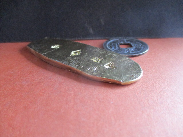 介護施設入所のための身辺整理を手伝うことになりました。佐渡金ブームが絶頂を迎えた昭和の一時期に購入したものとのことです。未鑑定・真贋不明と聞いています。人生の最晩年で世間に迷惑をかけたくはないとのことで、「本物ではない」ことを前提に低価格での放出を希望しています。事情をご賢察の上、本物でも本物でなくてもどちらでもかまわない方のみご入札ください。従って本物であっても後で差額分を請求することはいたしませんし、本物でなくても返品・返金には応じかねます。汚れや細かい傷があります。撮影の際の光の量によって実物と違った色に写ることがあります(2枚目の画像が最も実物の色に近いように思います)。高騰防止のため即決価格を設定いたしました。寛永通寳は商品に含まれません。自己紹介欄にオークション休業日を記載させていただいております。お手数とは存じますが、ご入札前にお読みいただければ幸いです。よろしくお願い申し上げます。