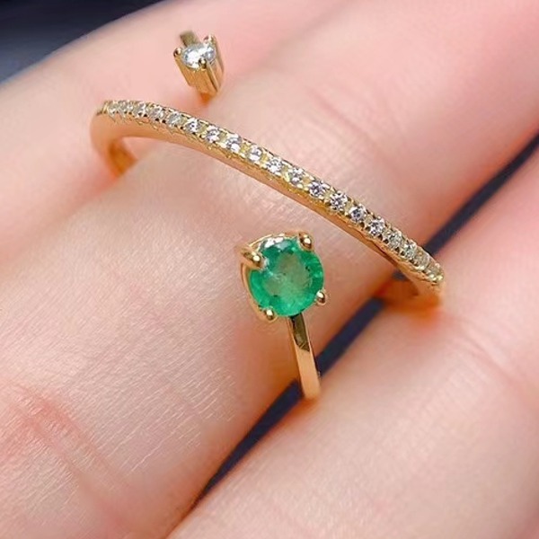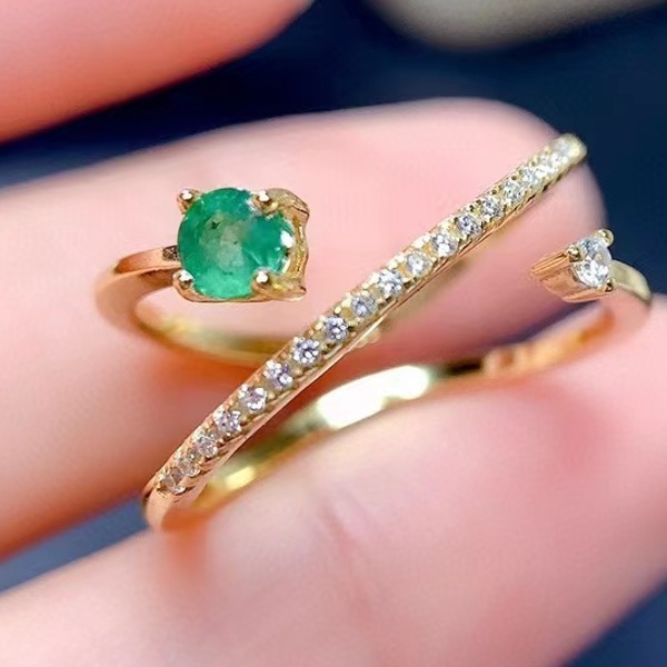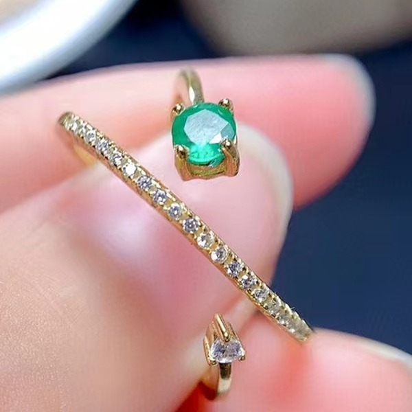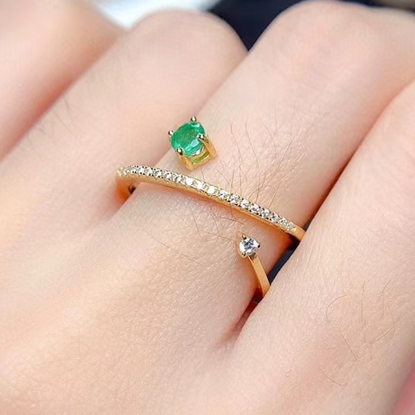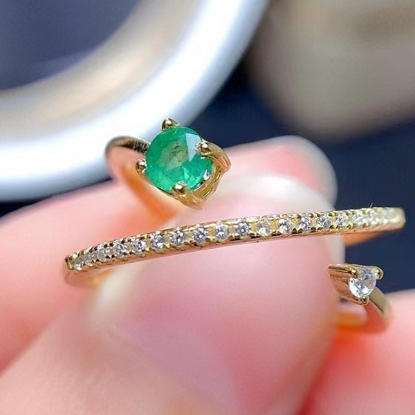 女性用天然エメラルドシルバーリング、925シルバー