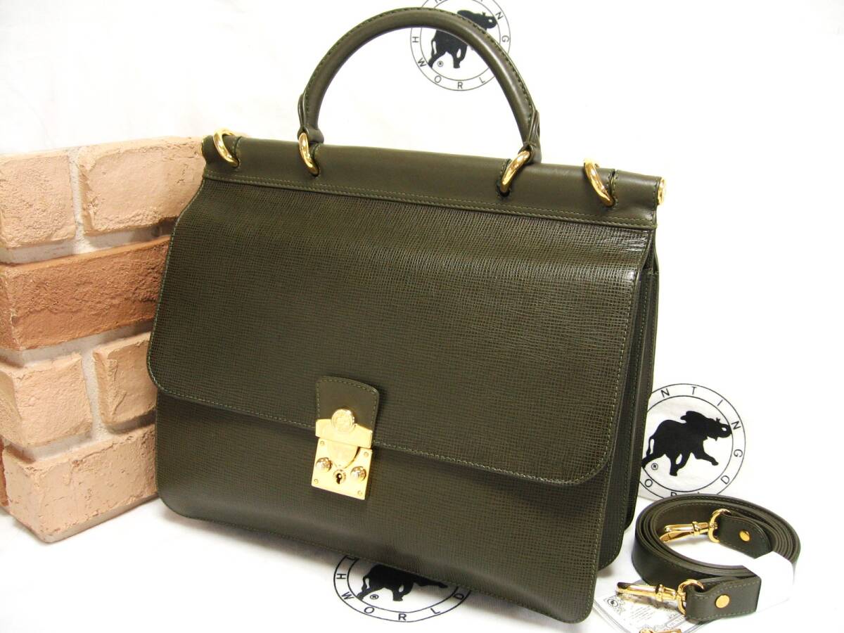 ★★★★★極レア!超入手困難!超稀少!全てが高級本皮!フルレザー・コレクション・LONDON GRAIN・ロンドングレインシリーズ・ショルダー取り付け可能&2WAYショルダーバッグ&ハンドバッグ・ハンティングワールド・HUNTING WORLD!!!
