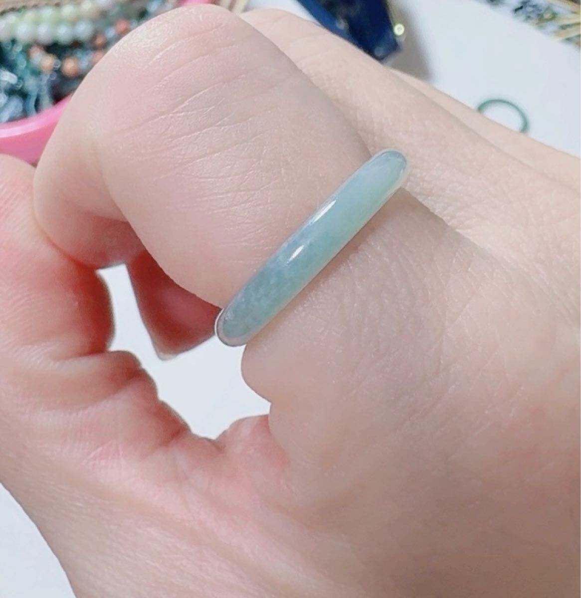 R2-0830天然本翡翠《本物保証》 藍水翡翠 指輪約16~17号 一点物 希少 縁起物 お守り 魔除け 昇進 成功 風水 金運 財運 幸運 幸福