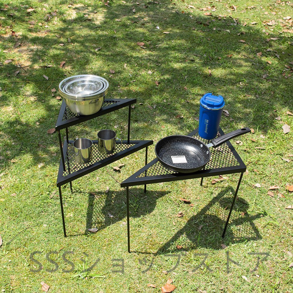 調理台 ローテーブル 3点セット 折りたたみ 収納袋付き アウトドア キャンプ ラック テーブル アイアンテーブ 黒