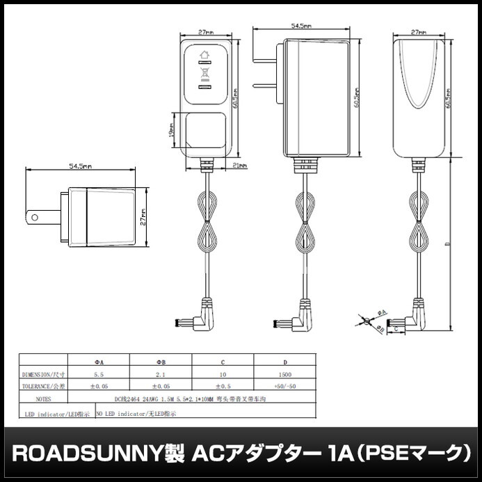 | 分類:スイッチングACアダプター 型番:RS-120100001 出力電圧:12V 出力電流:1A 消費電力:12W メーカー:ROADSUNNY(ロードサニー) 入力端子:差込プラグ 出力端子:DCジャック ジャックタイプ:L型コネクタ 定格入力電圧:100~240VAC 入力周波数:50/60Hz 極性:センタープラス DCコード規格:AWG26/300V/80℃ 重量(本体):約77g 保証:商品到着後、1年間の品質保証が付いております。 万が一品質に問題があった場合は、メールにてご連絡ください。 | |