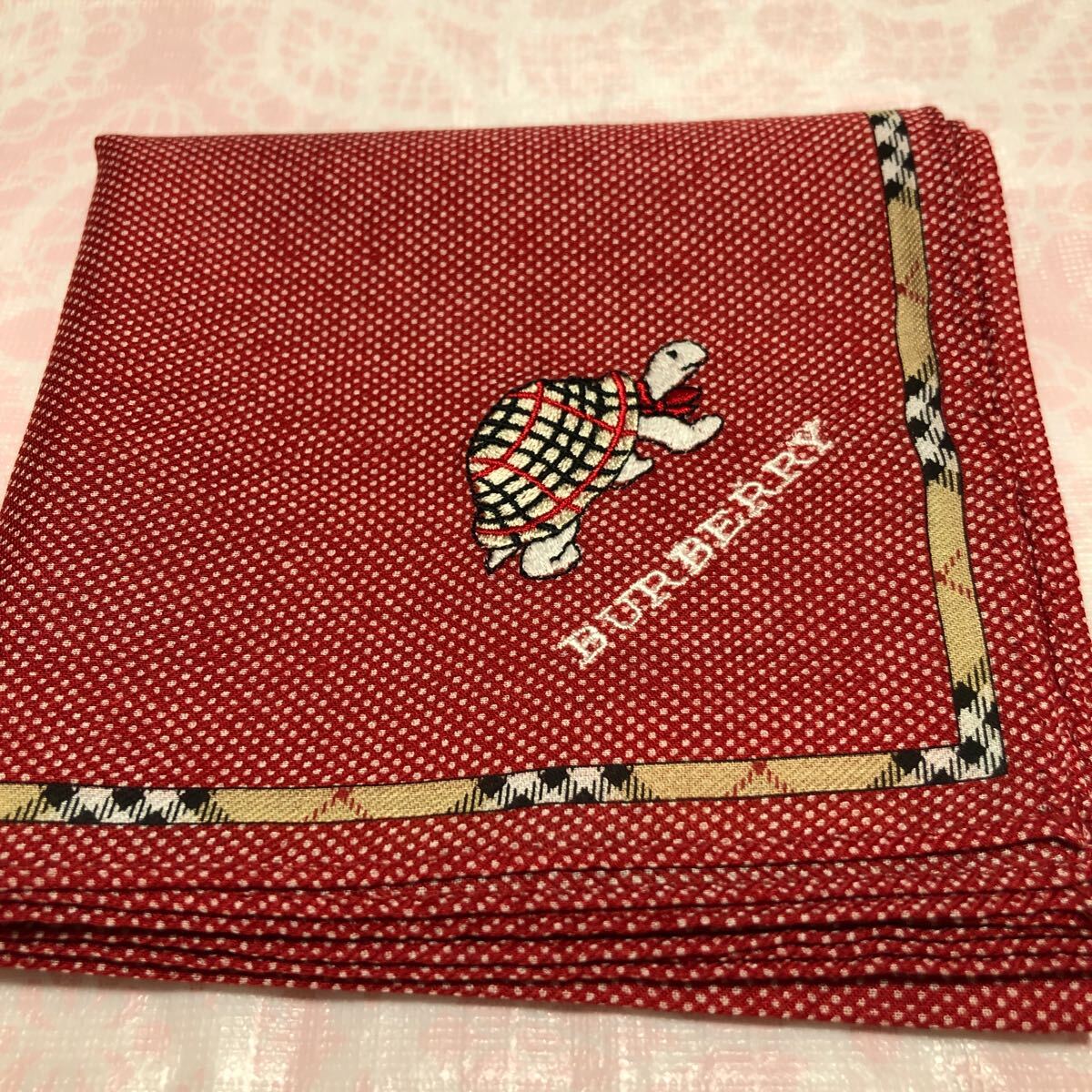 新品 バーバリー ハンカチ BURBERRY ノバチェック×亀刺繍 赤 レッド 未使用