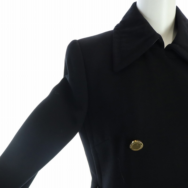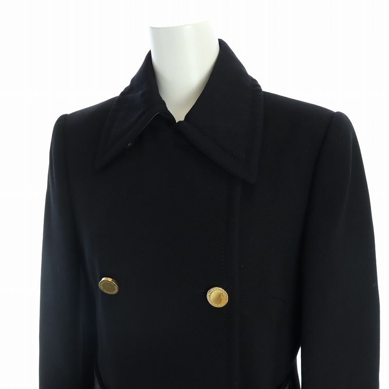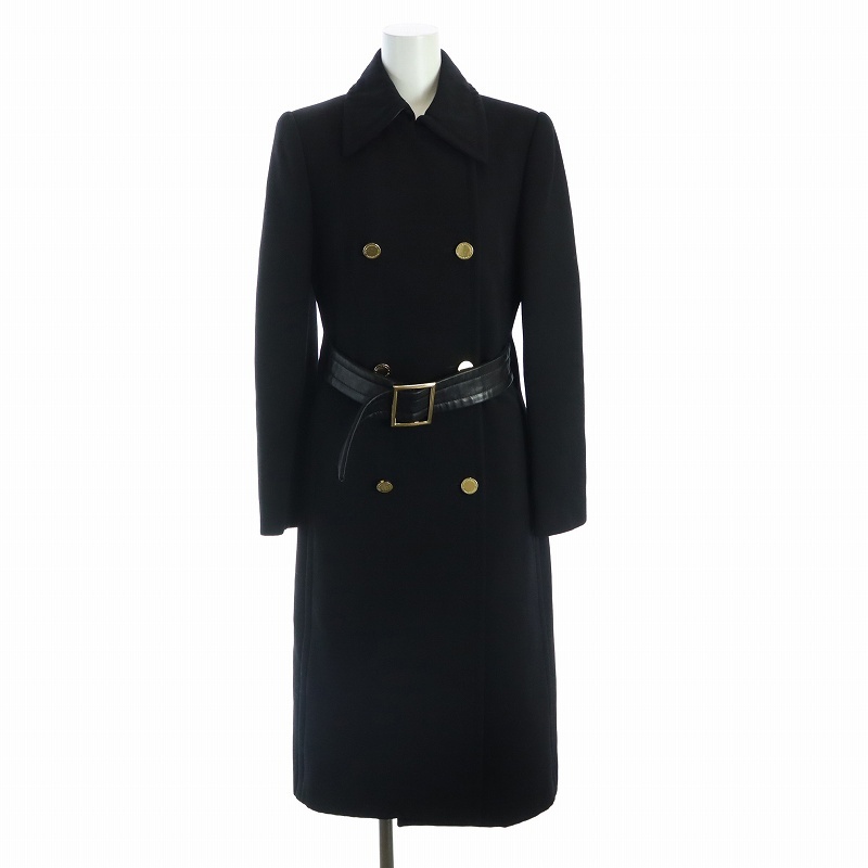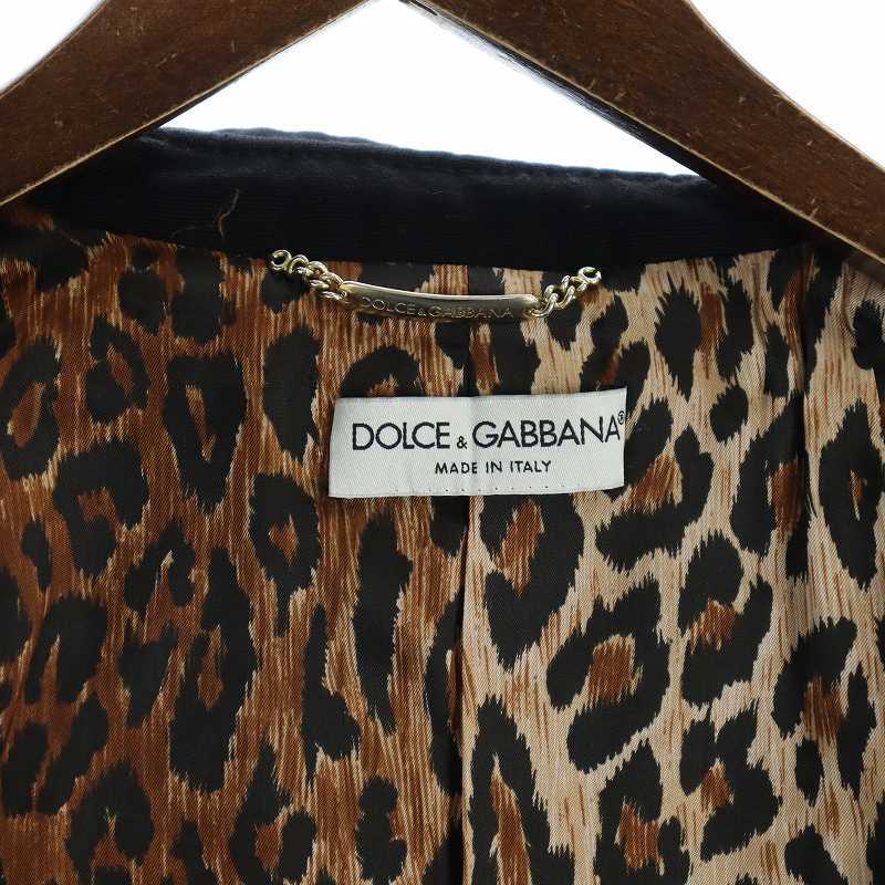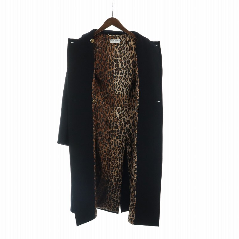 ドルチェ&ガッバーナ ドルガバ DOLCE&GABBANA ダブルコート ロング 長袖 金ボタン レオパード柄 ヒョウ柄 ベルト付き ロゴ 黒