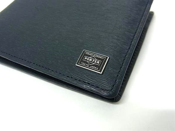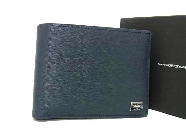 ■新品同様■ PORTER ポーター 吉田カバン カレント レザー 二つ折り 財布 ウォレット 小銭入れ メンズ ネイビー系 FM4018