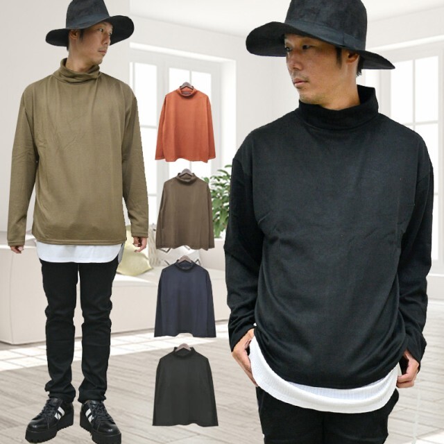 1円スタート ビックシルエット タートルオーバーサイズニット rv7507 セーター メンズ 新品 モカ L