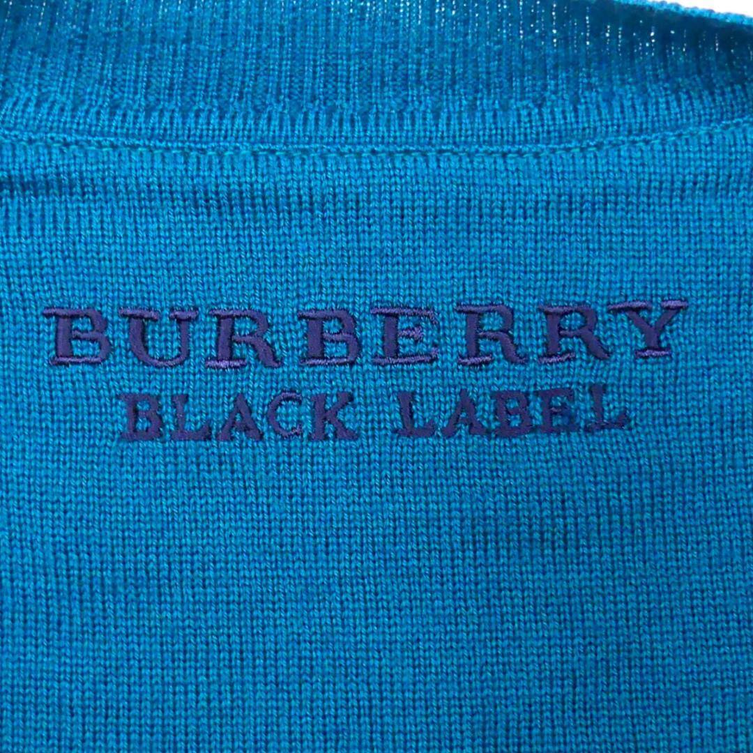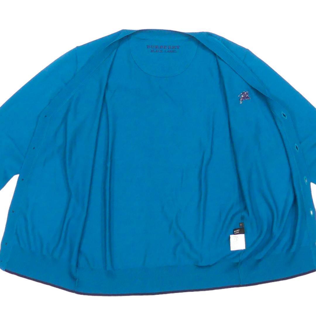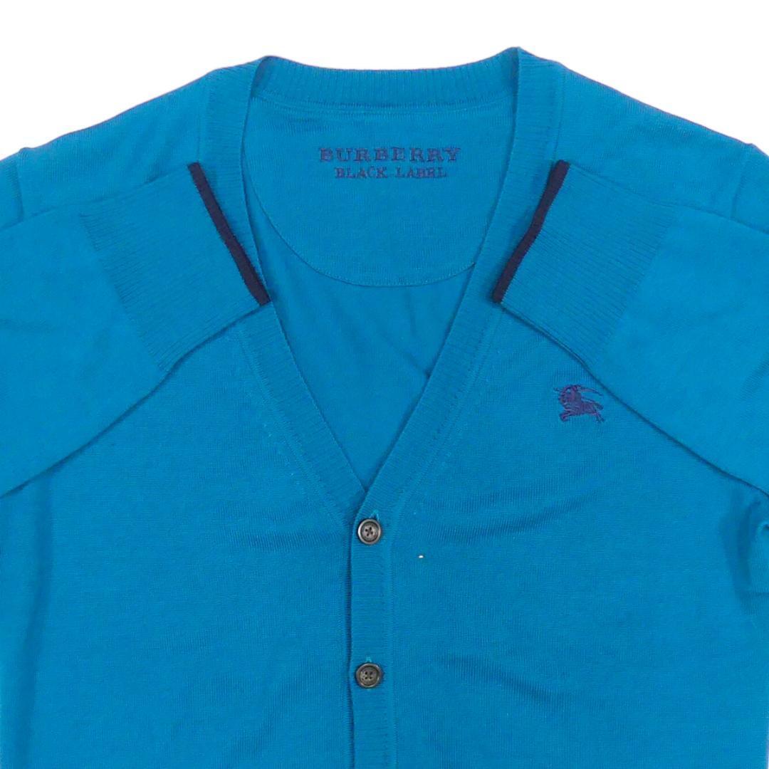 即決★BURBERRY BLACK LABEL★メンズM 廃版 カーディガン ニット セーター バーバリーブラックレーベル 2 青 ウール 刺繍