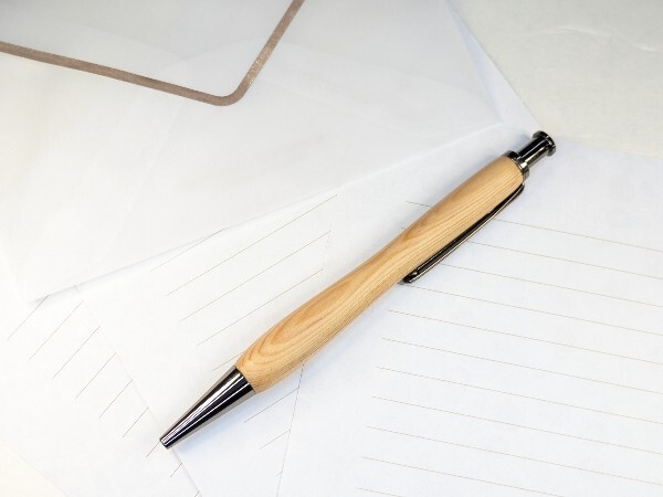 肥松材を使用して制作したハンドメイドのボールペンです。