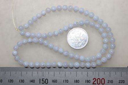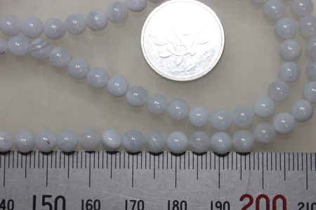 天然ブルーレースめのう、5mm丸玉、1本(約40cm)