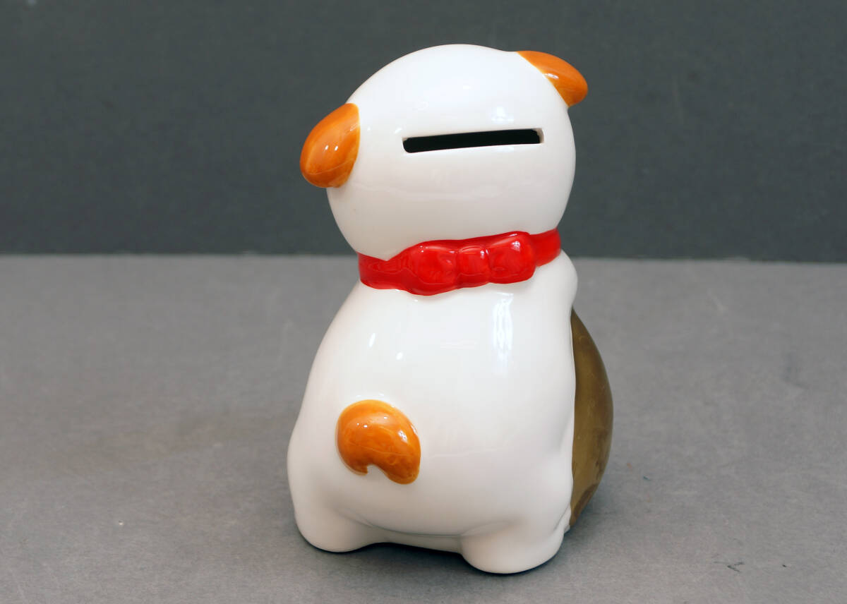 | 商品説明 | 和風 仔犬 陶器貯金箱 サイズ:W90㎜×D95㎜×H125㎜ 経年による傷・汚れ等が御座います。 | ||||