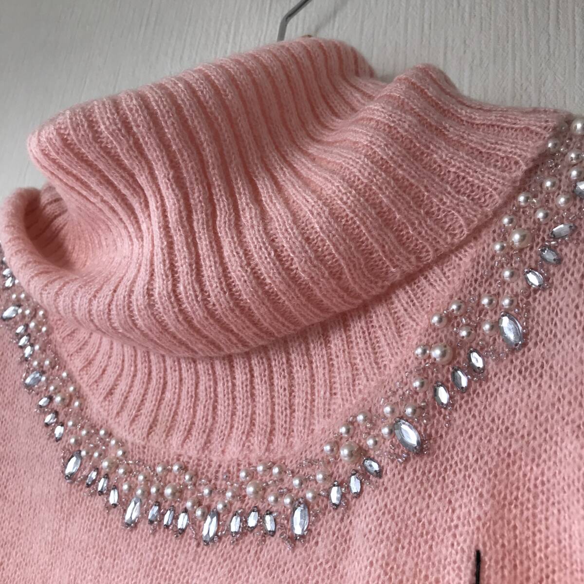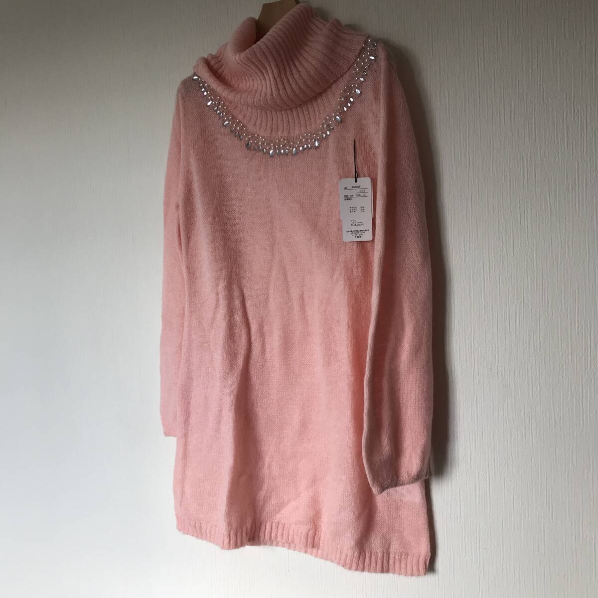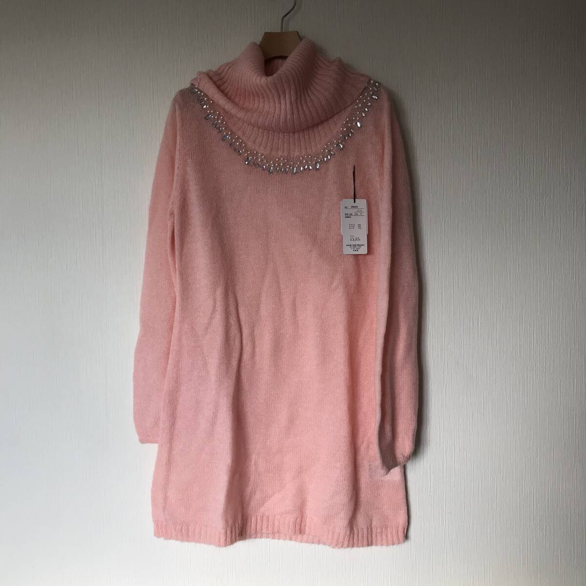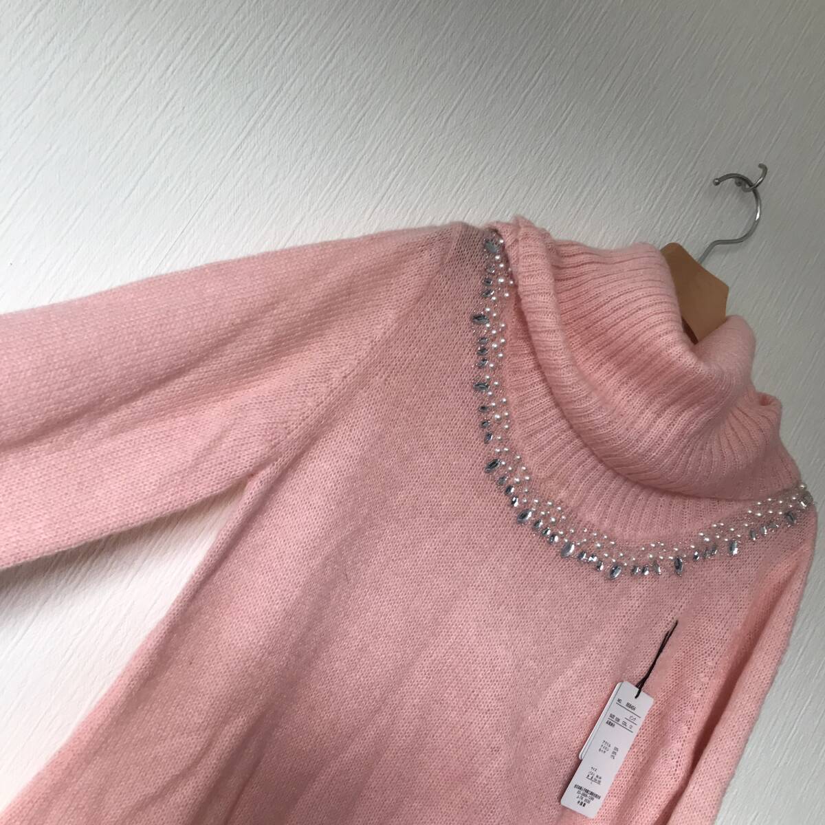 | 未使用■CLASSA■襟元ビジュー長袖ニットセーター■オフタートル■レディースL | |||