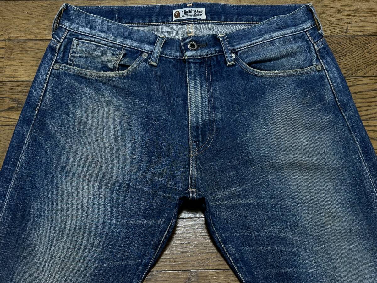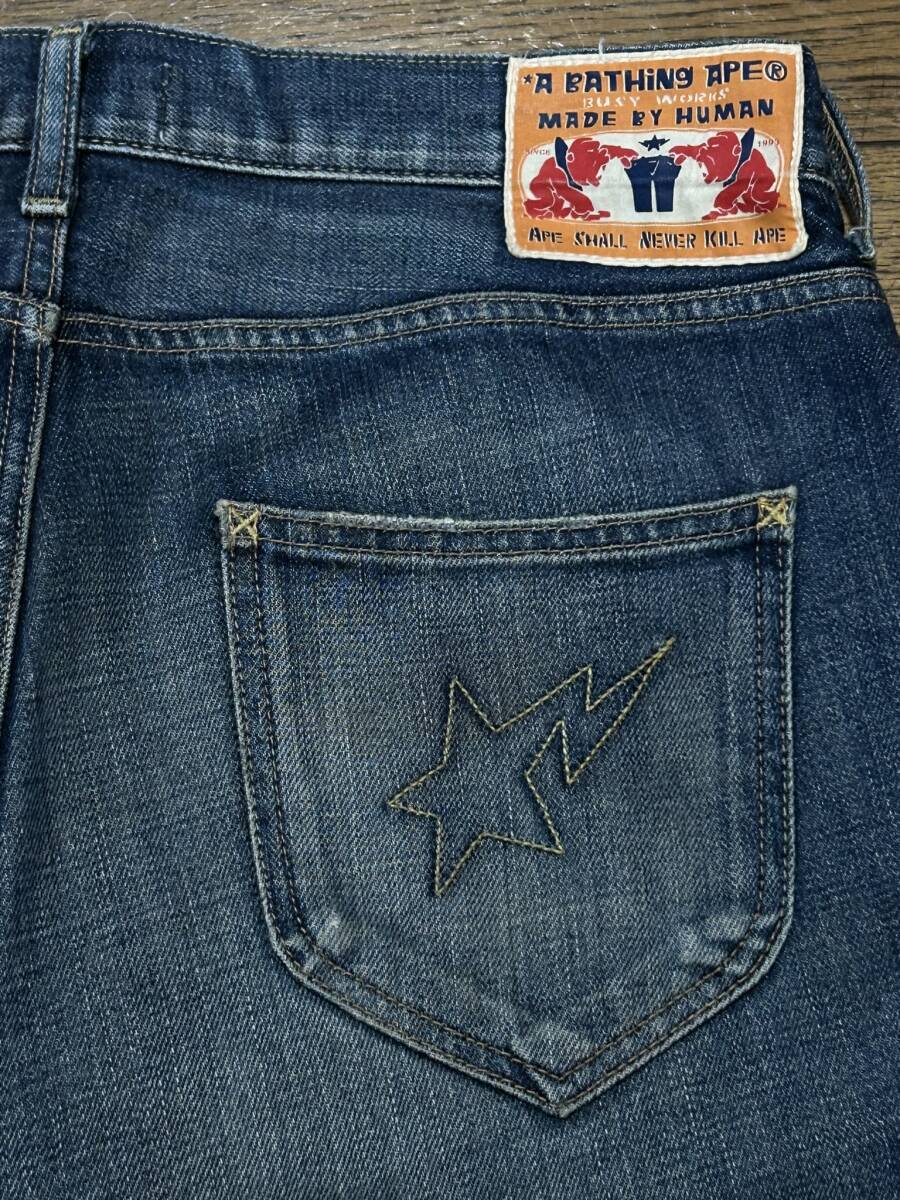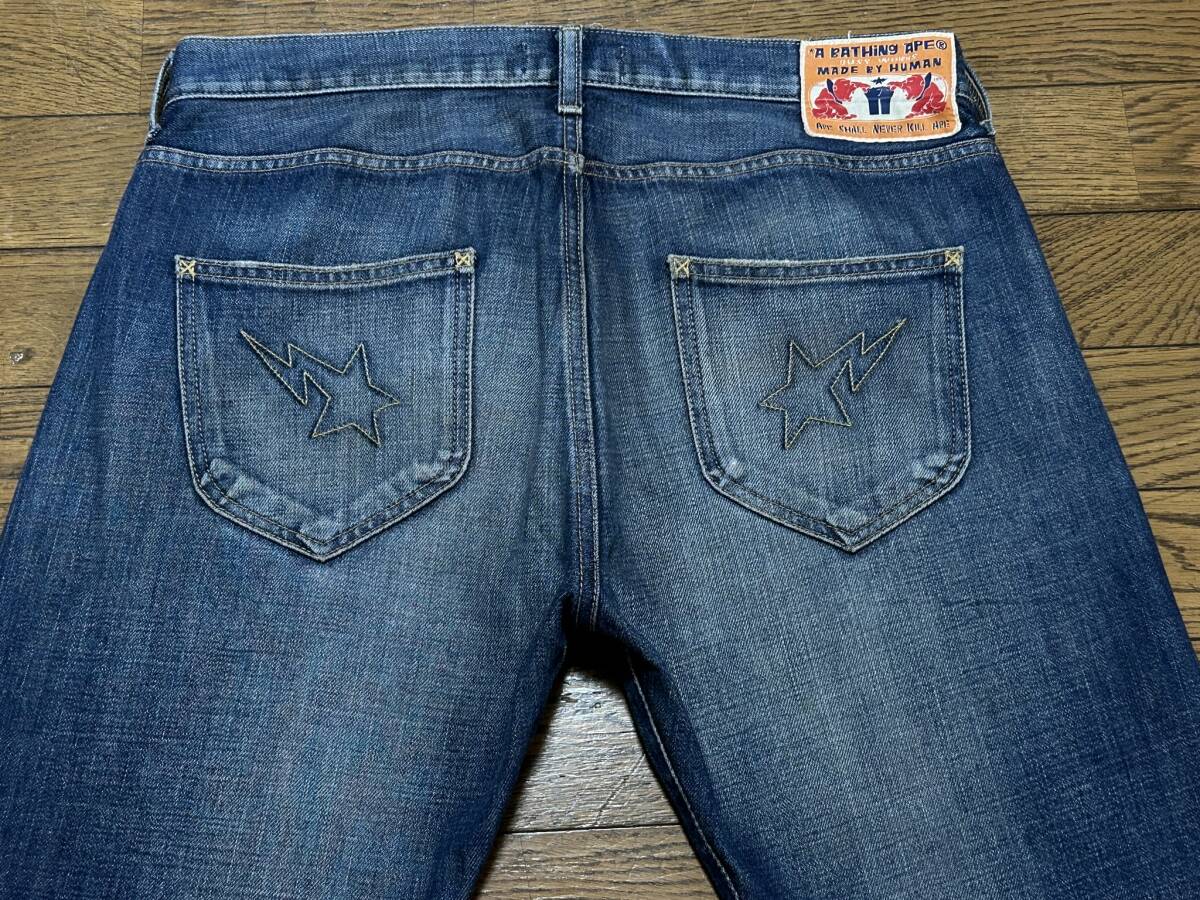 ※アベイシングエイプ A BATHING APE ポケットスター刺繍 セルビッチデニムパンツ インディゴ M      BJBD.G