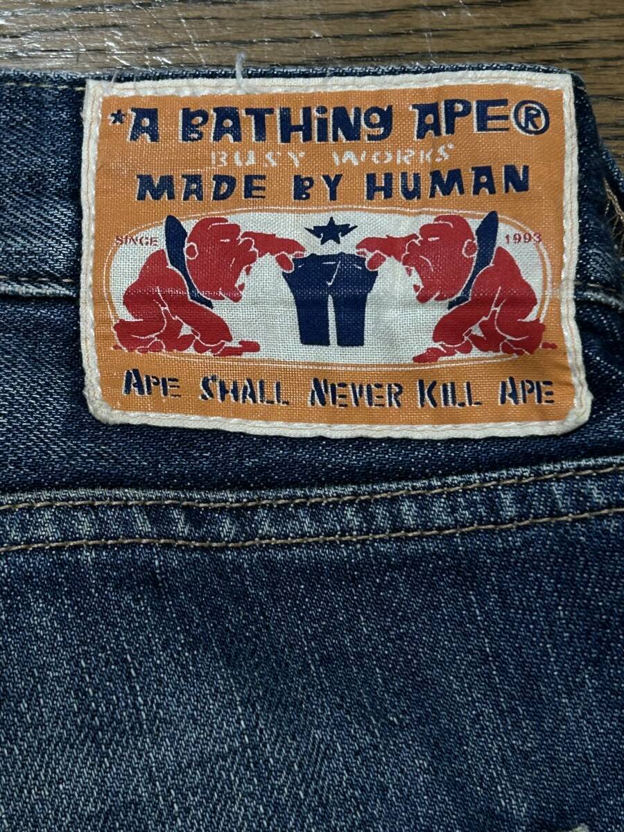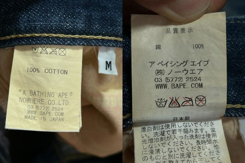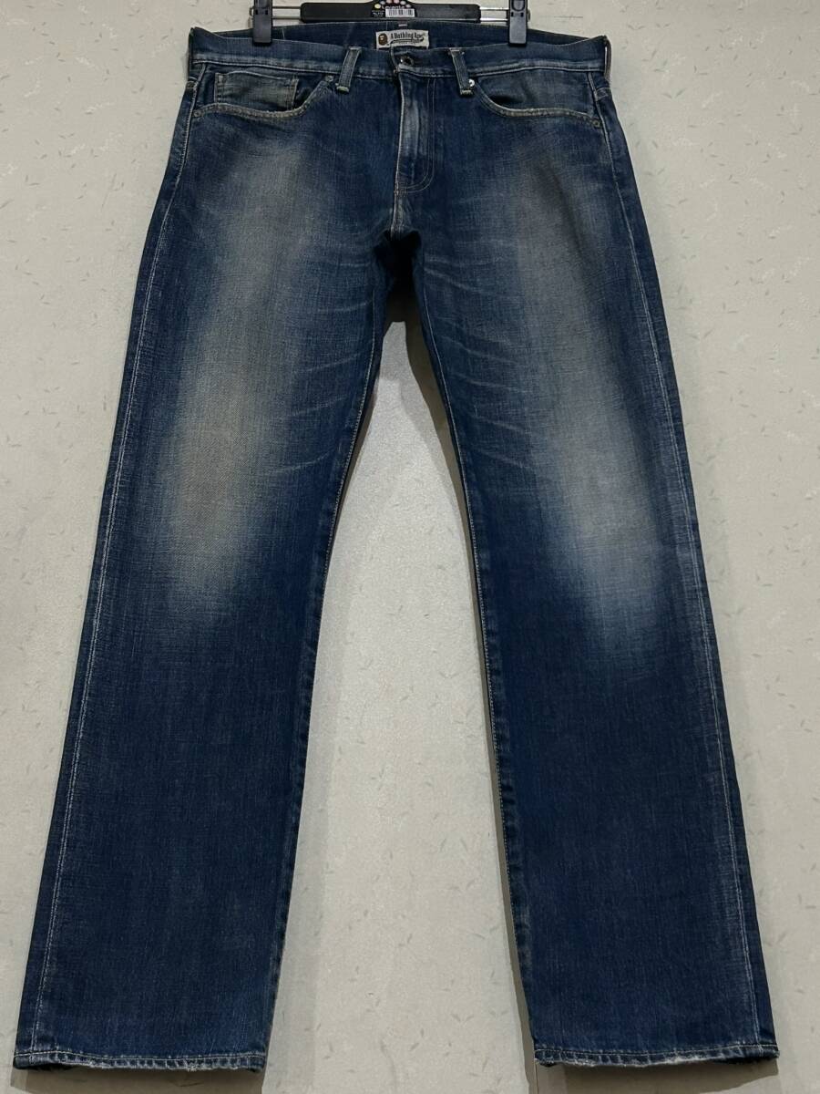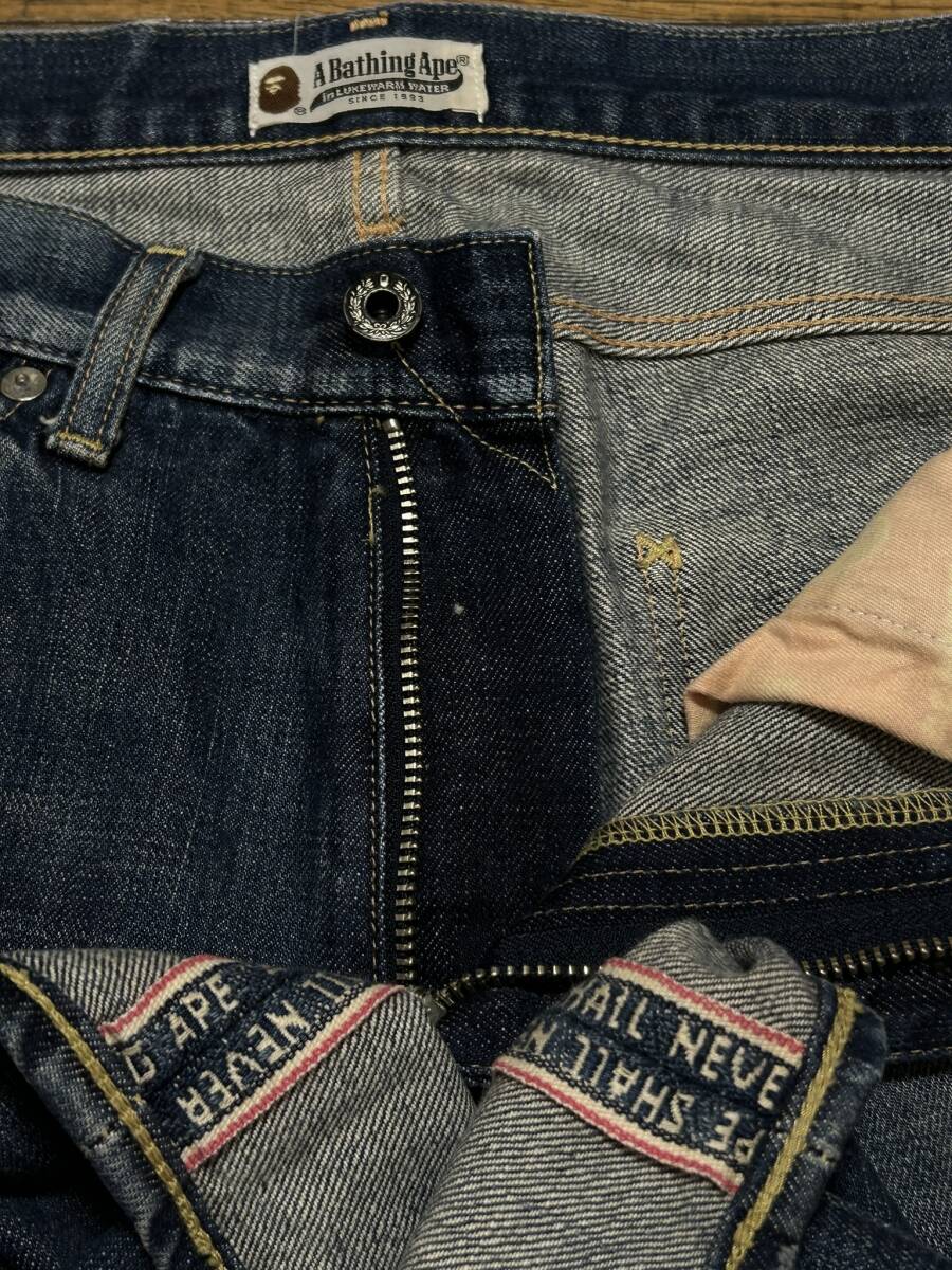 ※アベイシングエイプ A BATHING APE ポケットスター刺繍 セルビッチデニムパンツ インディゴ M      BJBD.G