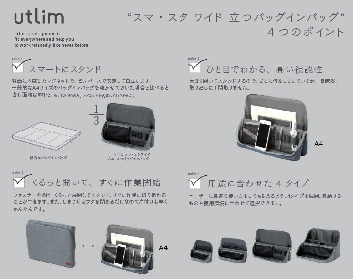 A4カタログ、12インチ以下のノート型PC、12インチタブレットなどを収納。
