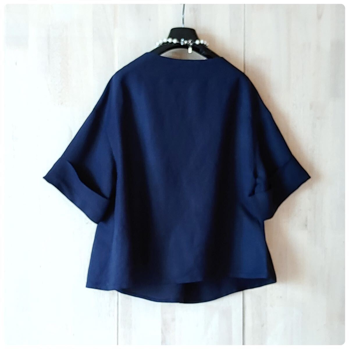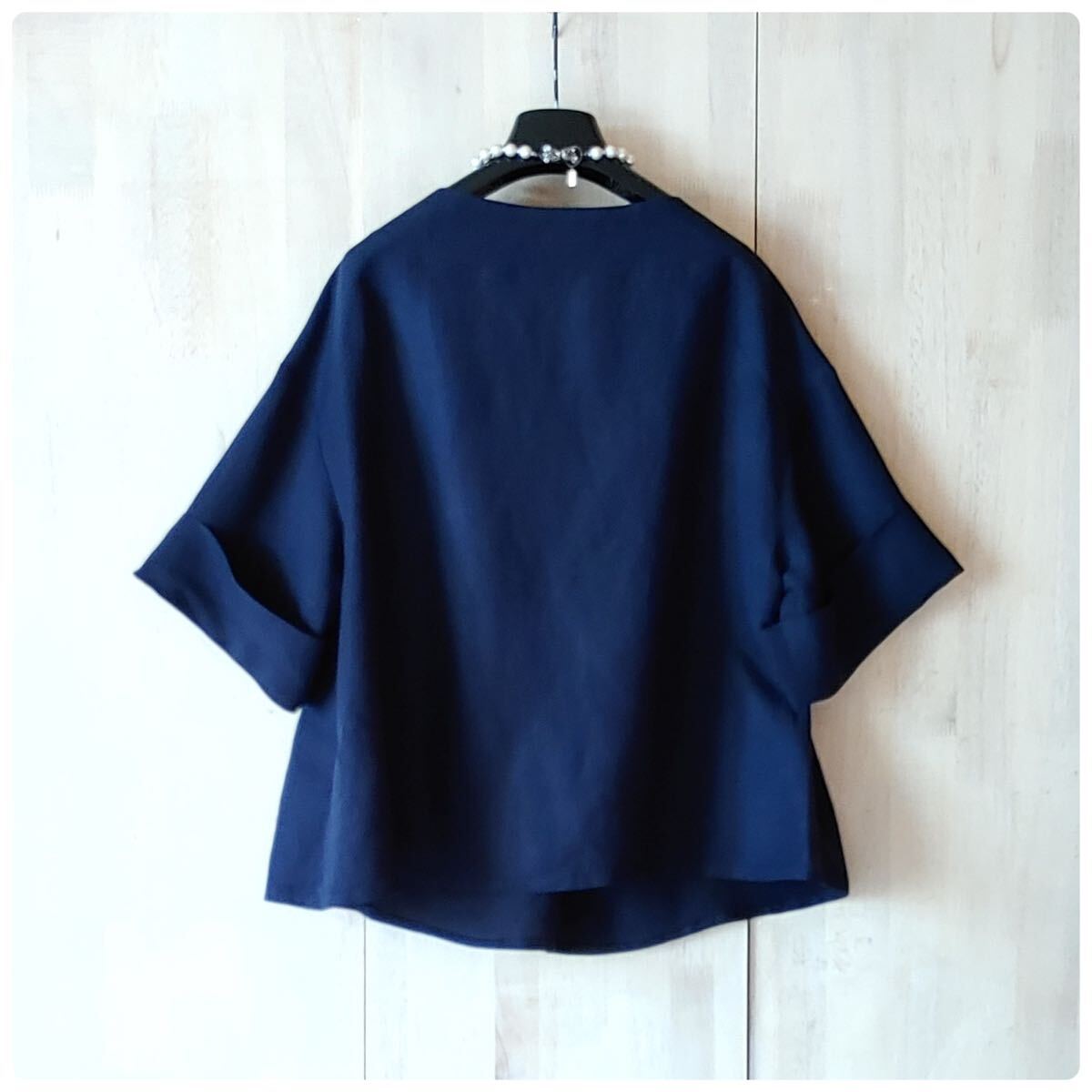 シャープなカッティングのVネックラインやワイドなダブルカフスがアクセントになったこなれモードなブラウスです。