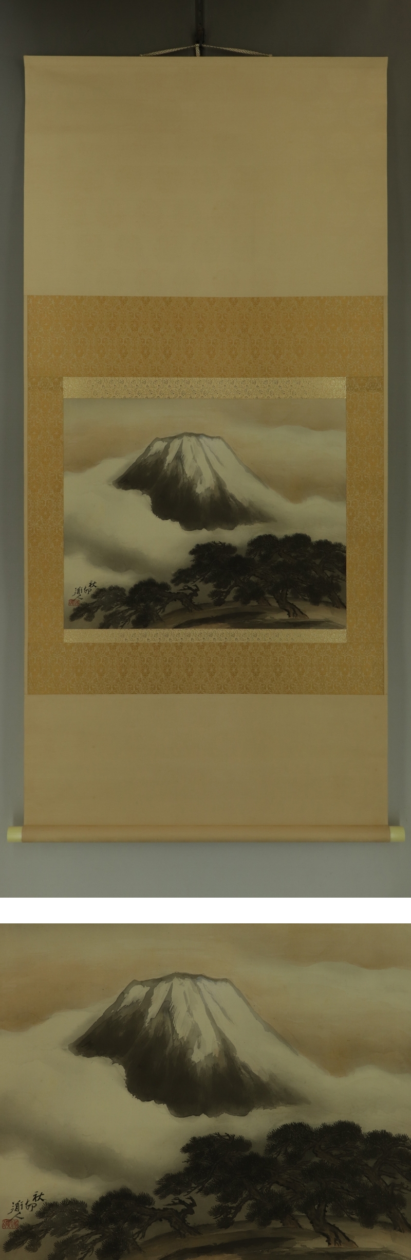 | №2406039【模写】河野秋邨【富嶽瑞光】◆絹本◆共箱◆二重箱◆掛軸 | |
