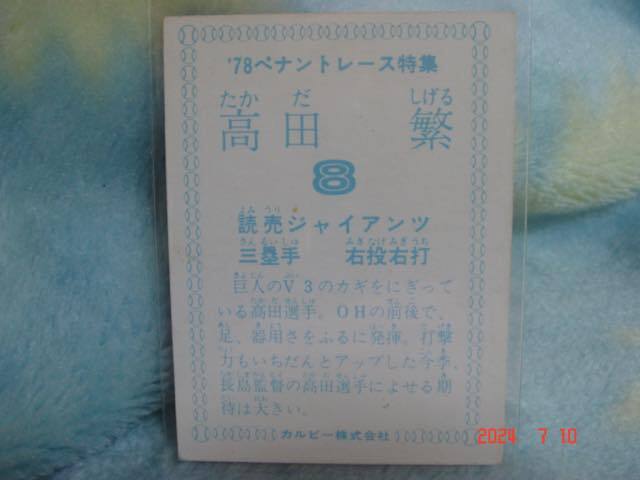 *カルビー '78年 プロ野球カード 『'78ペナントレース特集』(高田/巨人)美品*