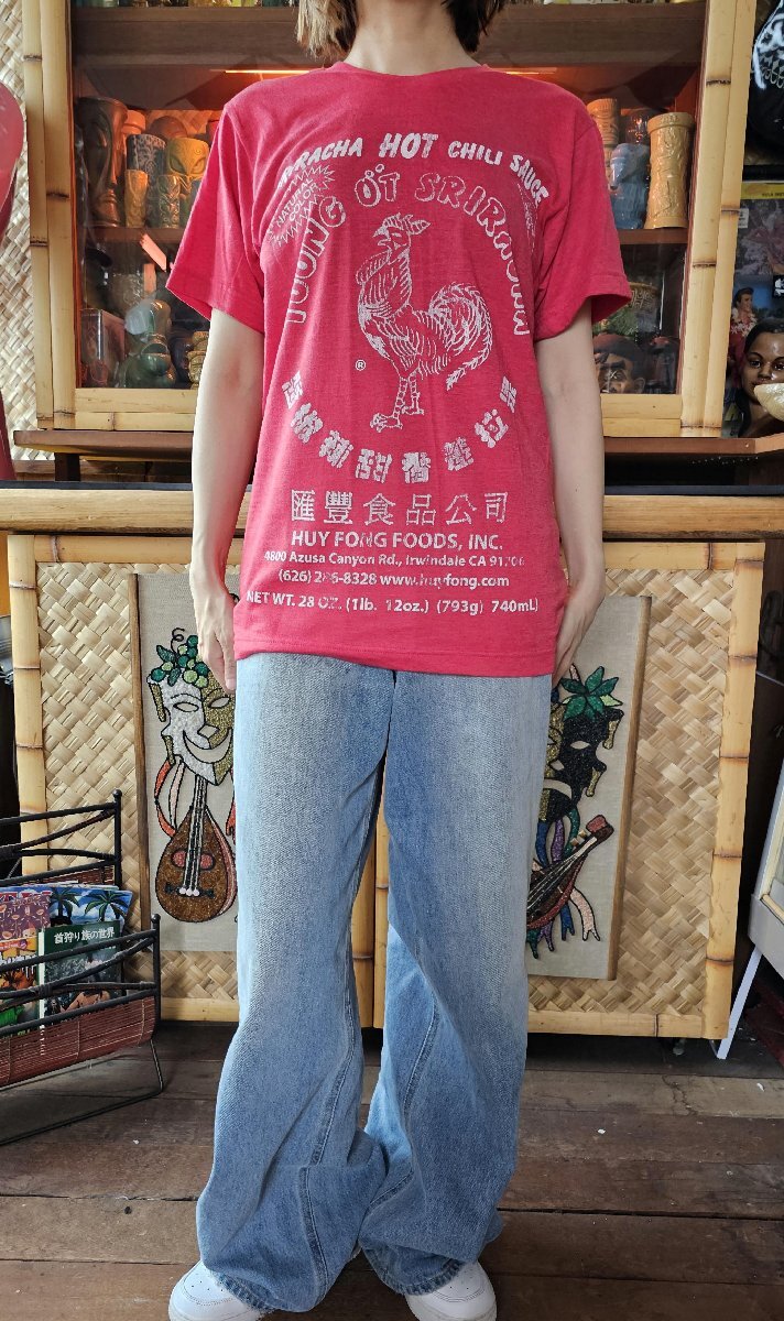 | SRIRACHA, SRIRACHA RED TEE MENS LIGHTWEIGHT TEE タイやアメリカなどでフイフォン・フード(Huy Fong Food)社が製造、販売している全米トップクラスの販売量を誇るチリソース、シラチャー ソース のTシャツ「SRIRACHA RED TEE MENS LIGHTWEIGHT TEE」です。 プリングルスや亀田製菓とのコラボで、ここ日本でもジワジワと知名度をあげるシラチャー ソース、 シンボルのニワトリが白い塗料で描かれている、印象深いボトルそのままのデザイン、インパクトあります!! Color: RED HEATHER 新品・正規品 XLサイズ 180cm位の方~良いかと思われます。肩幅47cm,着丈78cm,身幅57cm モデル 161cm , Sサイズ着用 郵メール便送料¥250(代引き不可・紛失補償なし) THRASHER、Sailor Jerry等~アメキャラ・企業ロゴ等ライセンスアイテム、ラットフィンク関連品、バンドTシャツ等取り扱っております。 ** 他にも色々出品中です。 CWLPpC IWTS | |||||||