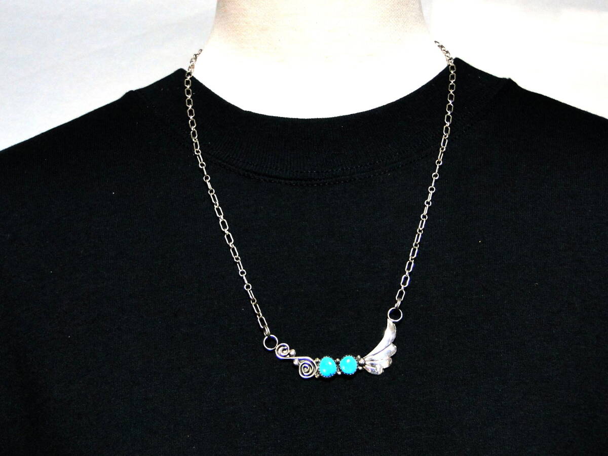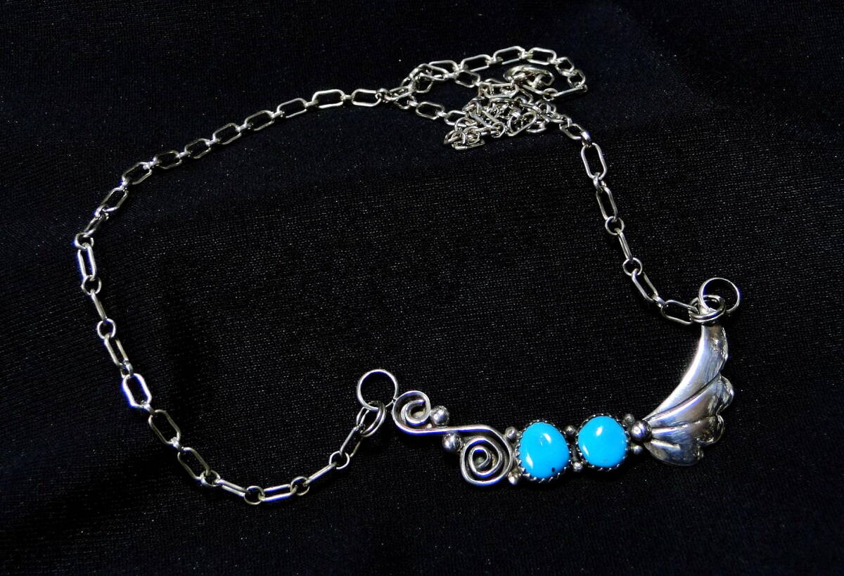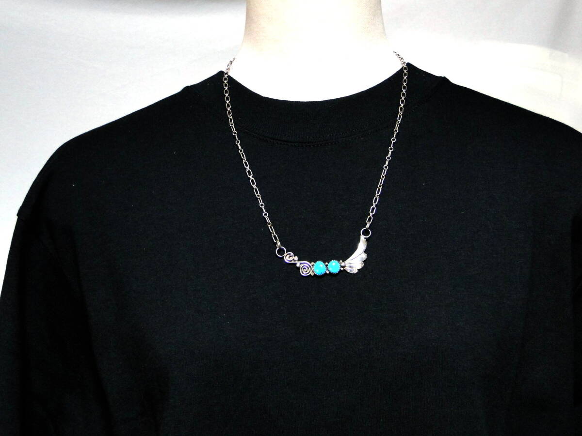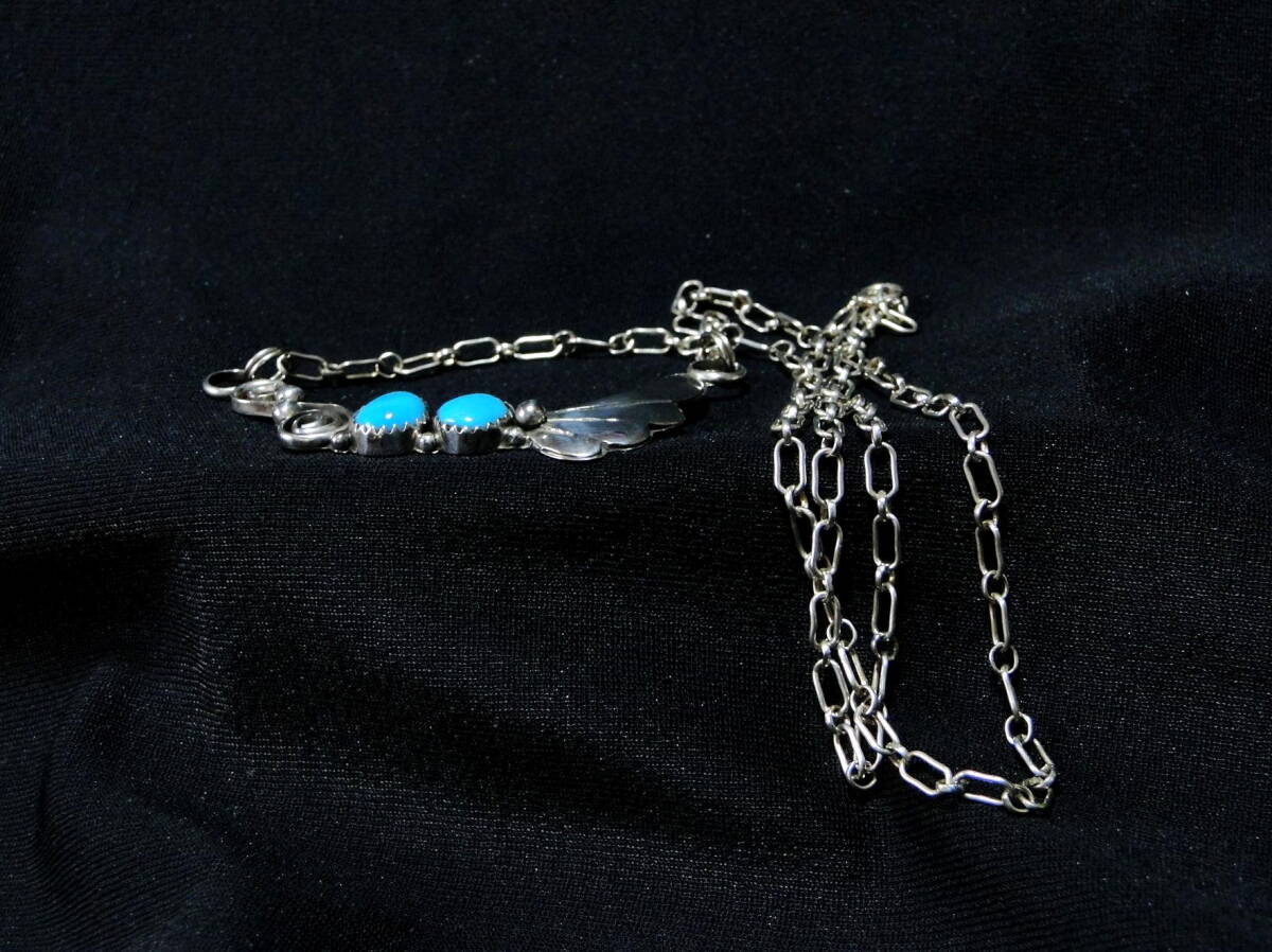 ナバホ族、、、 90年代 フェザー&ワイヤーワーク ◆商品詳細 ナバホ族/ Annie chapo作 ステアリング刻印 ターコイズ/ 本体サイズ; 57.6x31.8mm、 重量9.7g チェーン;48cm VINTAGE ・1990年代品・ ・送料込 ハンドメイド特有の擦り傷、 シルバーの燻がございます。 十分にご検討の上、 決断をお願い致します。 | ||||
