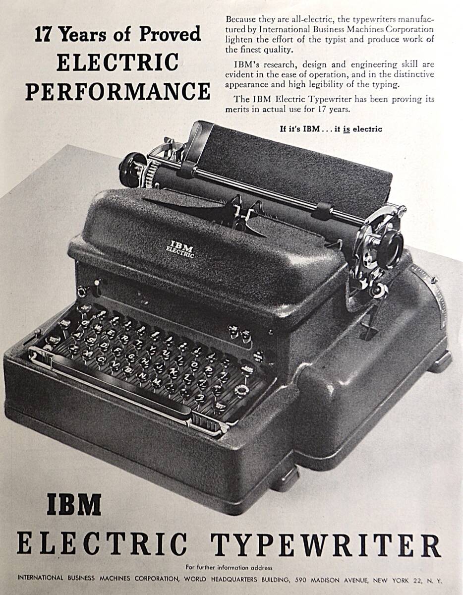 稀少!広告/1947年アイビーエム・タイプライター広告/IBM Electric Typewriter/T