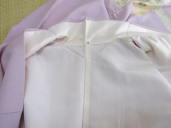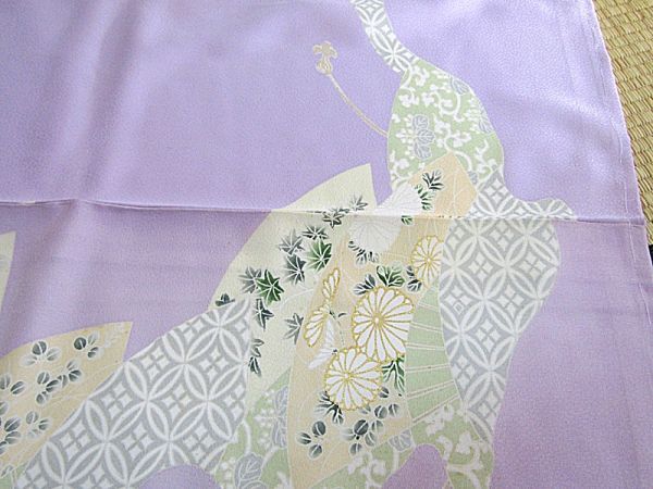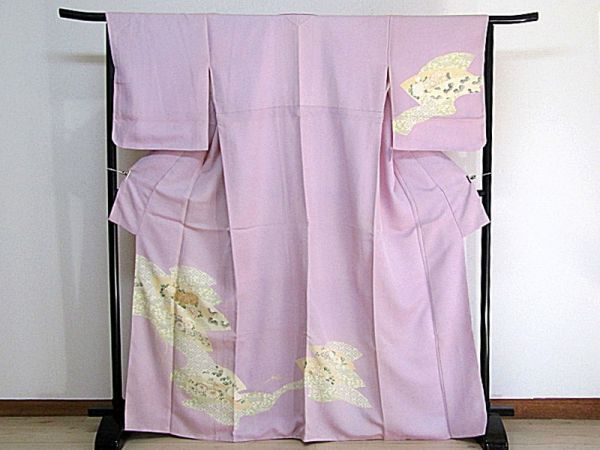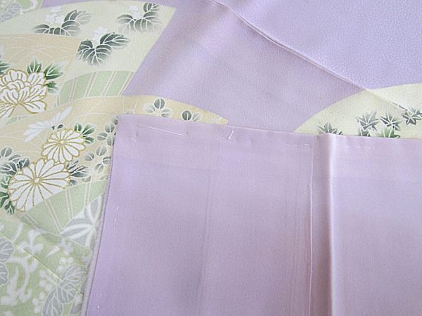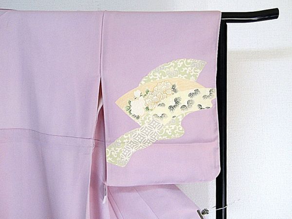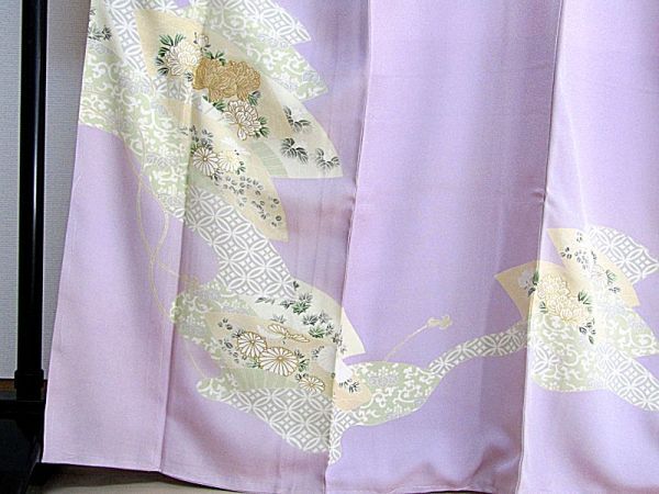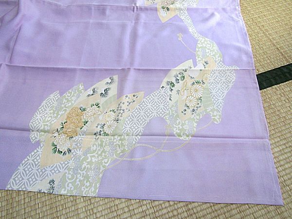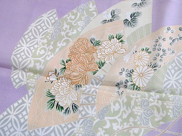 きれいな藤色地に扇の柄の附下きものです。