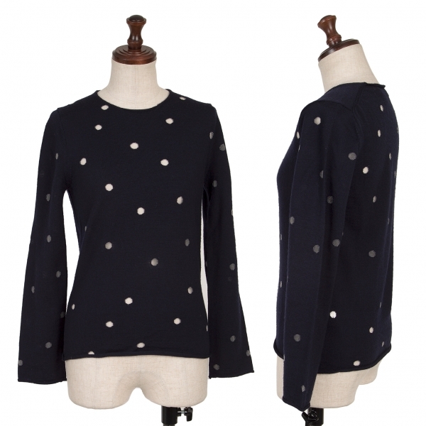 | コムコム コムデギャルソンCOMME des GARCONS ウール透かしドットニットセーター 紺SS |