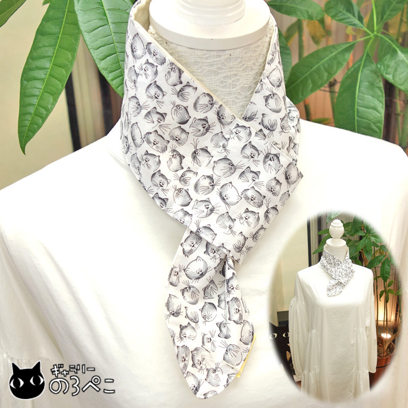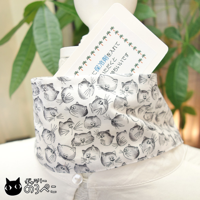 接触冷感のモノトーン猫ちゃん夏マフラー(保冷剤をセットできるポケット付きネッククーラー) aa362-372