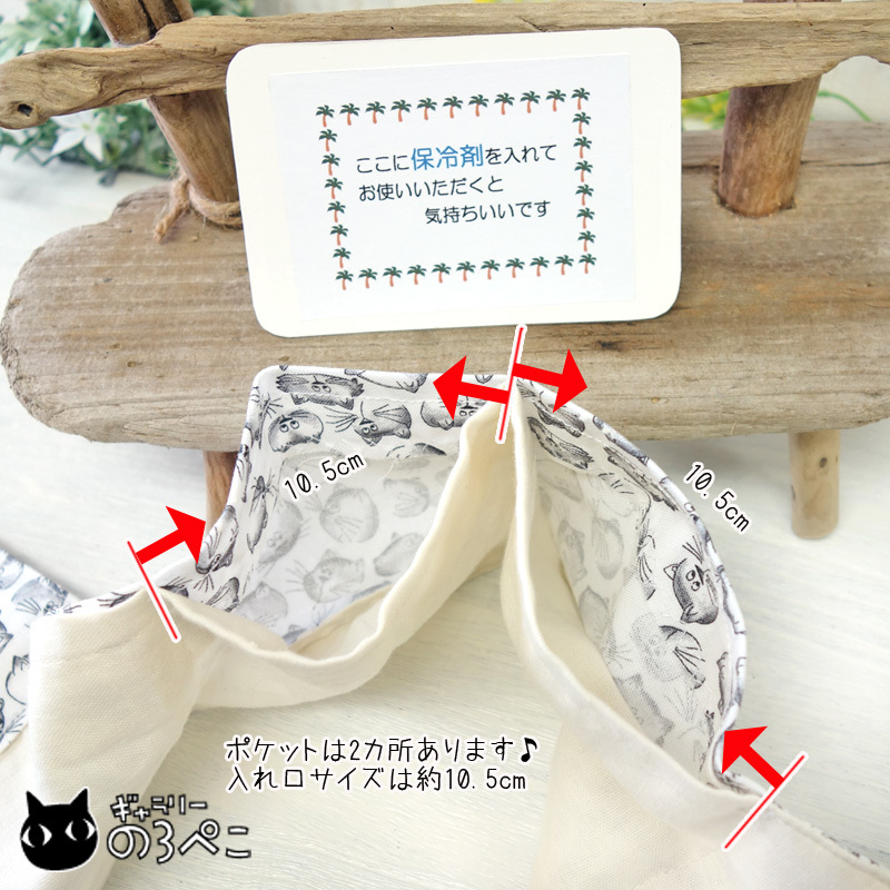保冷剤ポケットの口幅約10.5cm(ポケットは2か所です)