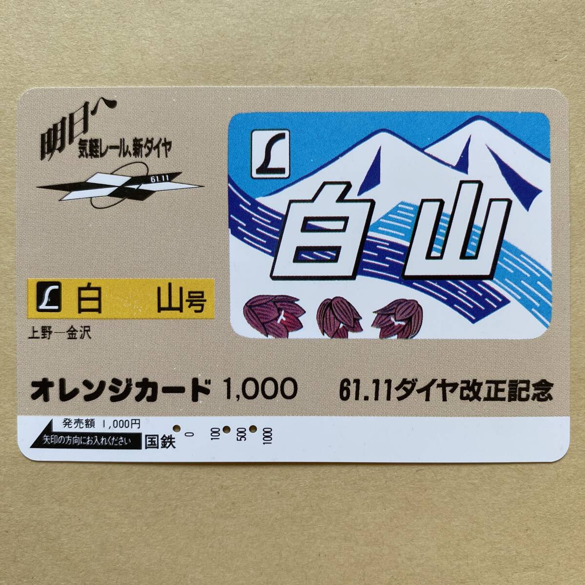 【使用済】 オレンジカード 国鉄 61.11 ダイヤ改正記念 白山号 上野~金沢