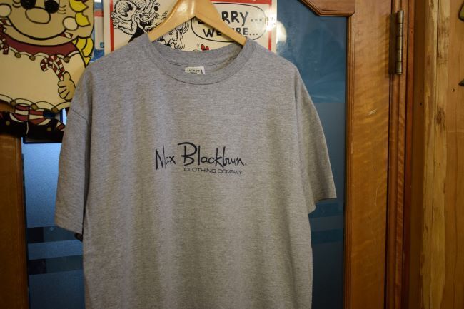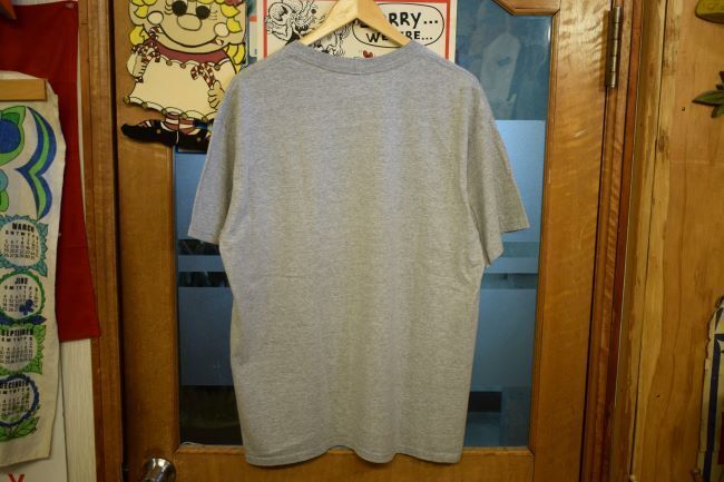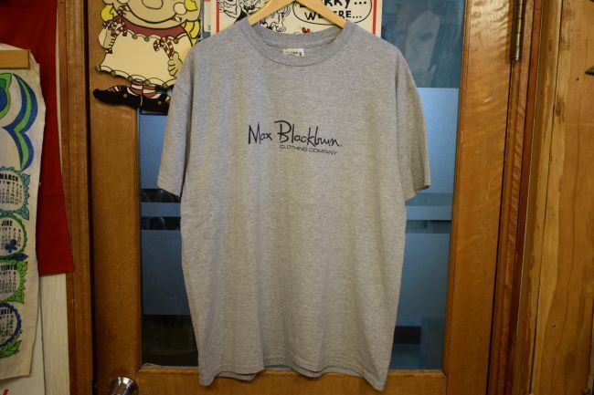 グッドプリント90SビンテージanvilアンビルボディMax BlackburnマックスブラックバーンロゴプリントTシャツXLグレーネイビーh24846