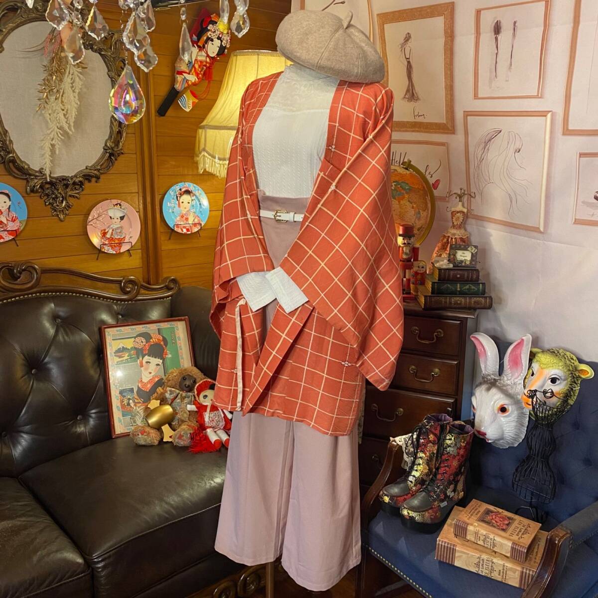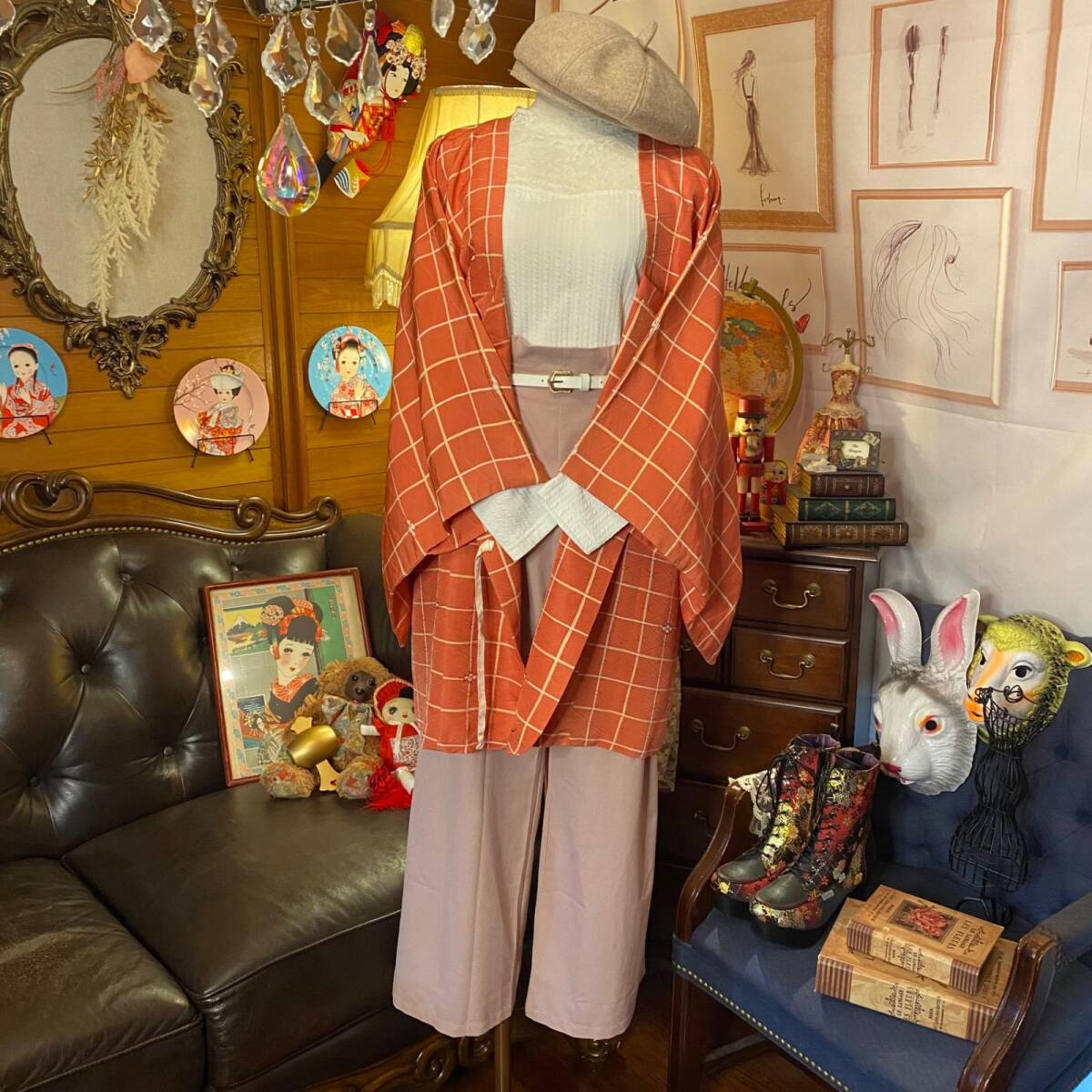 【 和洋折衷 セレクト まとめ売り コーデ レトロ クラシカル 古着 和装 道行コート ピンク系 4点セット C-328 】