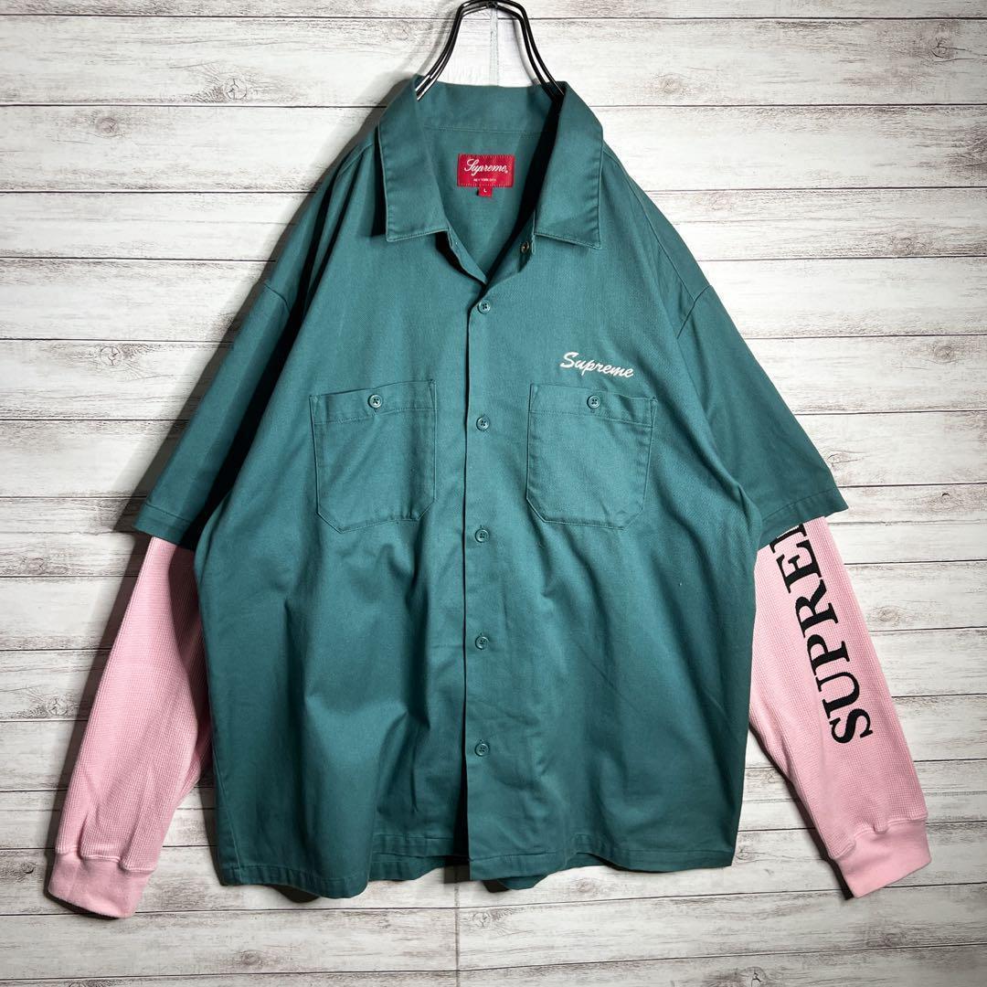 【入手困難!!】シュプリーム 刺繍 スリーブロゴ レイヤード シャツ 開襟