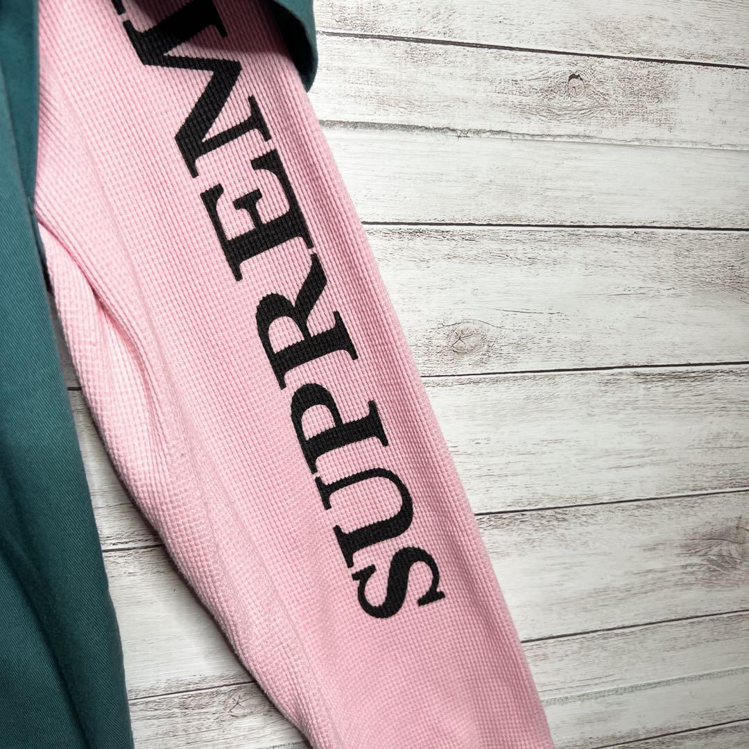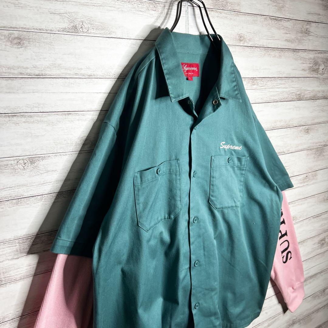 【入手困難!!】シュプリーム 刺繍 スリーブロゴ レイヤード シャツ 開襟 オープンカラー トレーナー ゆるだぼ 重ね着 希少 supreme パーカー スウェット