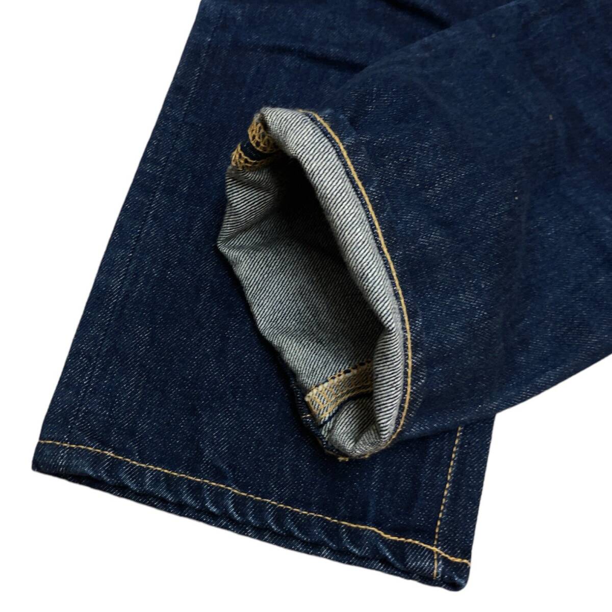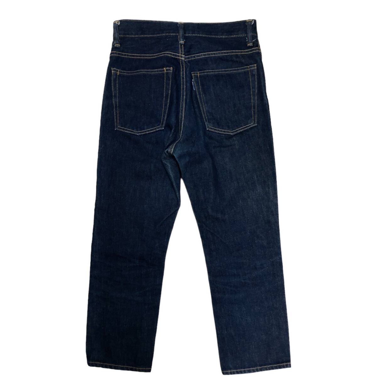 | 実寸サイズ | ウエスト:約70cm(平置きウエスト×2) 股上:約27cm(内股の合わせ~ウエスト上端) 股下:約59.5cm(内股から裾) もも幅:約24cm 裾幅:約16cm |