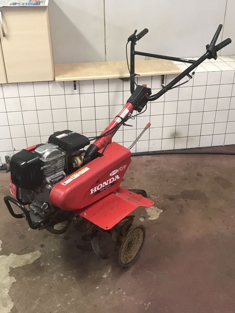 中古品、エンジン始動,前進1.2,後進1,ロータリー回転を確認しました、オイル滲みや漏れがありません、細かいチェックを行っておりませんので、現状渡し、傷、汚れ、錆などがあります、ご了承の上に入札をお願いします。 ※動画確認はこちら:HONDA FG400 JH holiday ミニ耕うん機 管理機