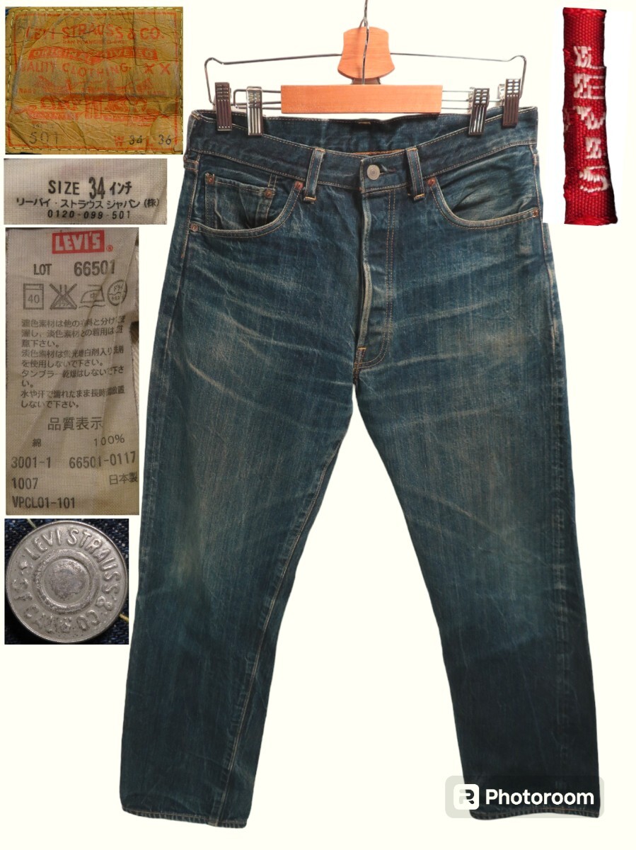 日本製(2007年モデル)★W34(約80cm)【LEVIS/リーバイス】良色/ヒゲ/ビンテージ/1960年代/復刻/501xx/66501-0117/BIG-E/LVC/赤耳/シングル
