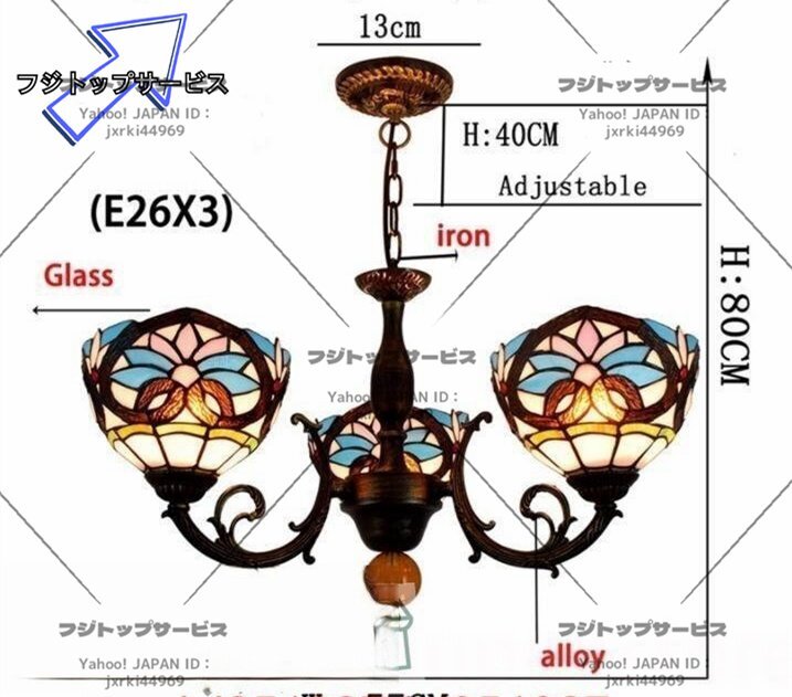 素材:合金、ガラス サイズ:H80cm*W57CM ワット数 : 電球40W×3個(E26)