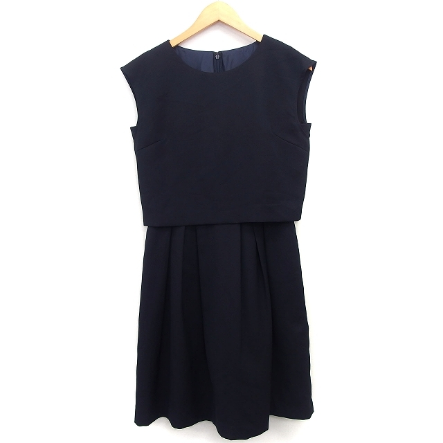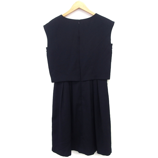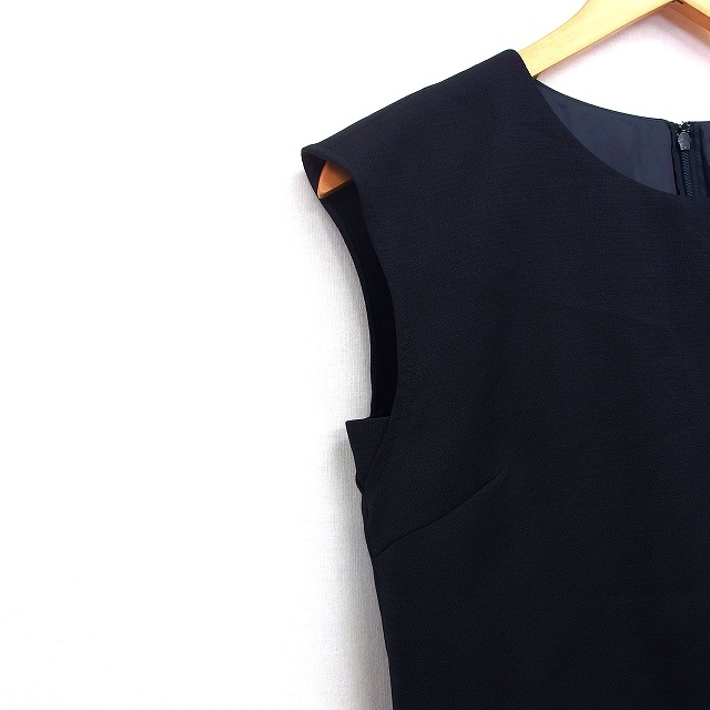 コムサイズム COMME CA ISM ワンピース フレア 膝下 セットアップ風 無地 シンプル タック ノースリーブ 丸首 7 黒 /HT33 レディース