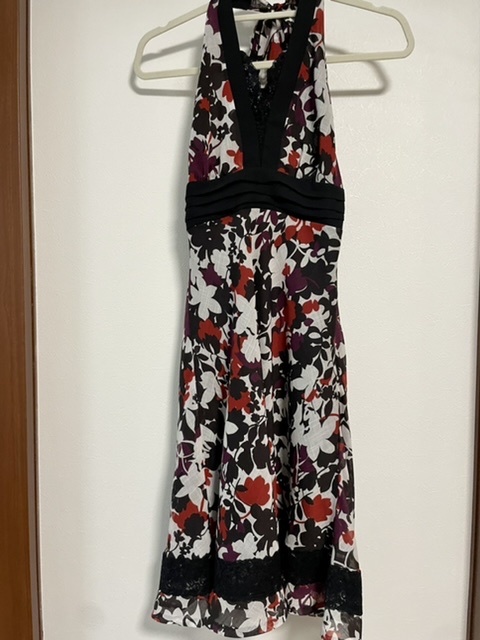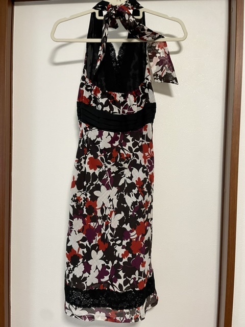 首で結ぶデザインの華やかワンピース。左脇ファスナー。美品。