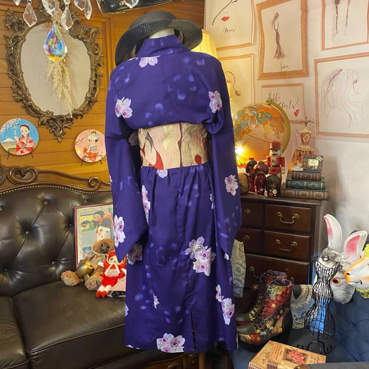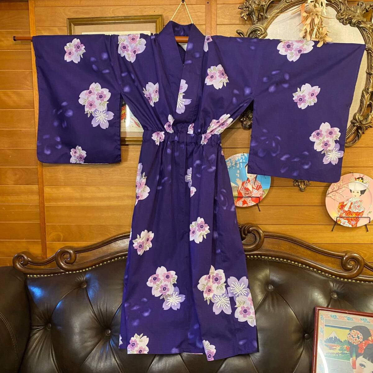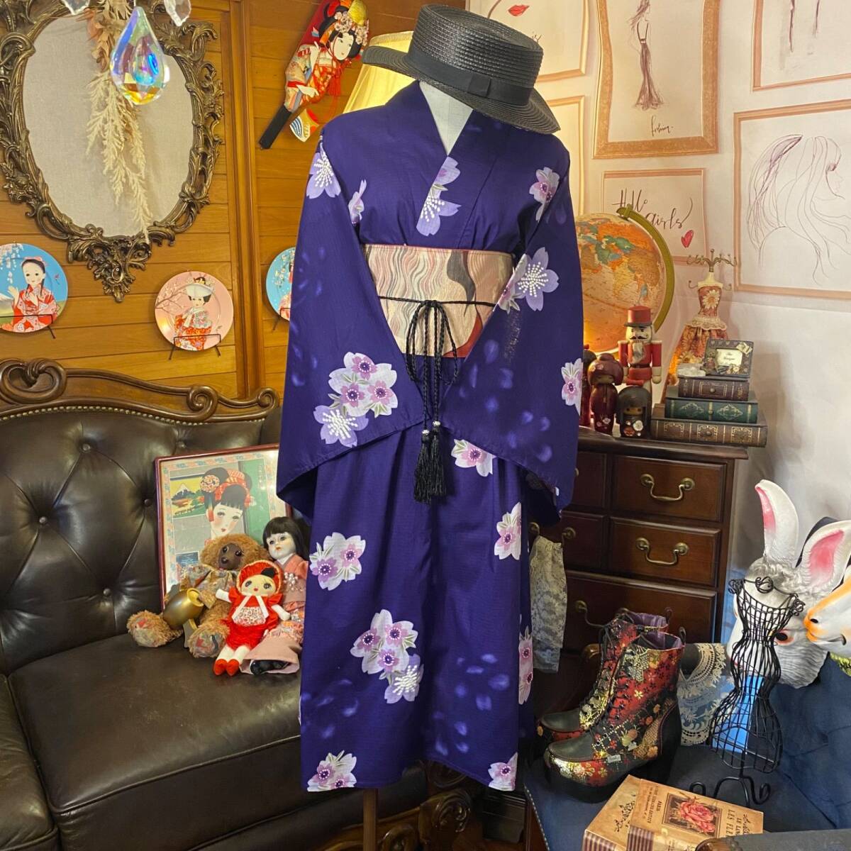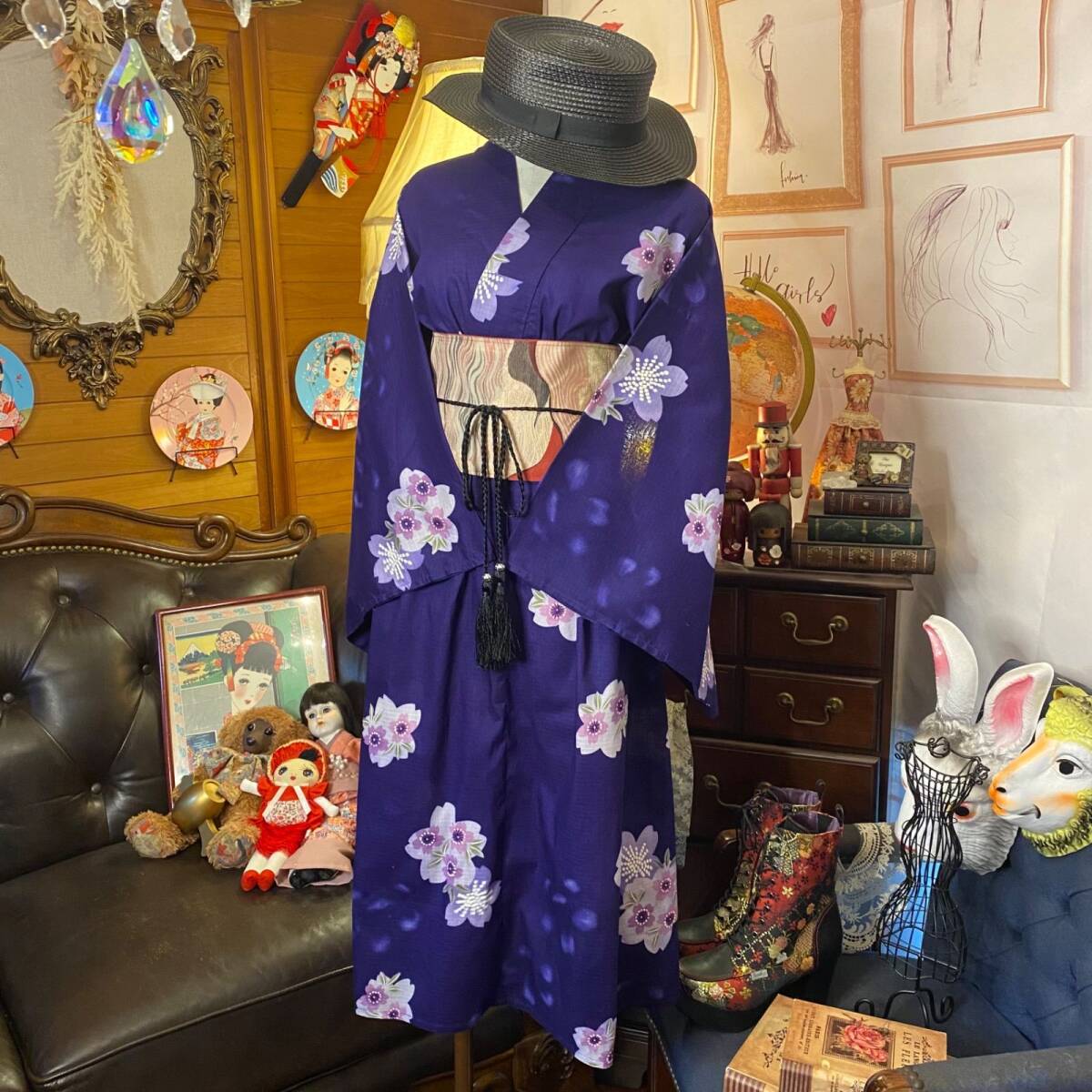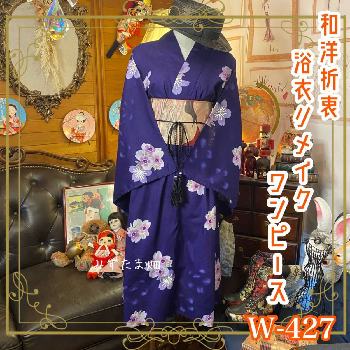 【 和洋折衷 浴衣 リメイク ワンピース ドレス 帯サッシュベルト 可愛いお花 W-427 】
